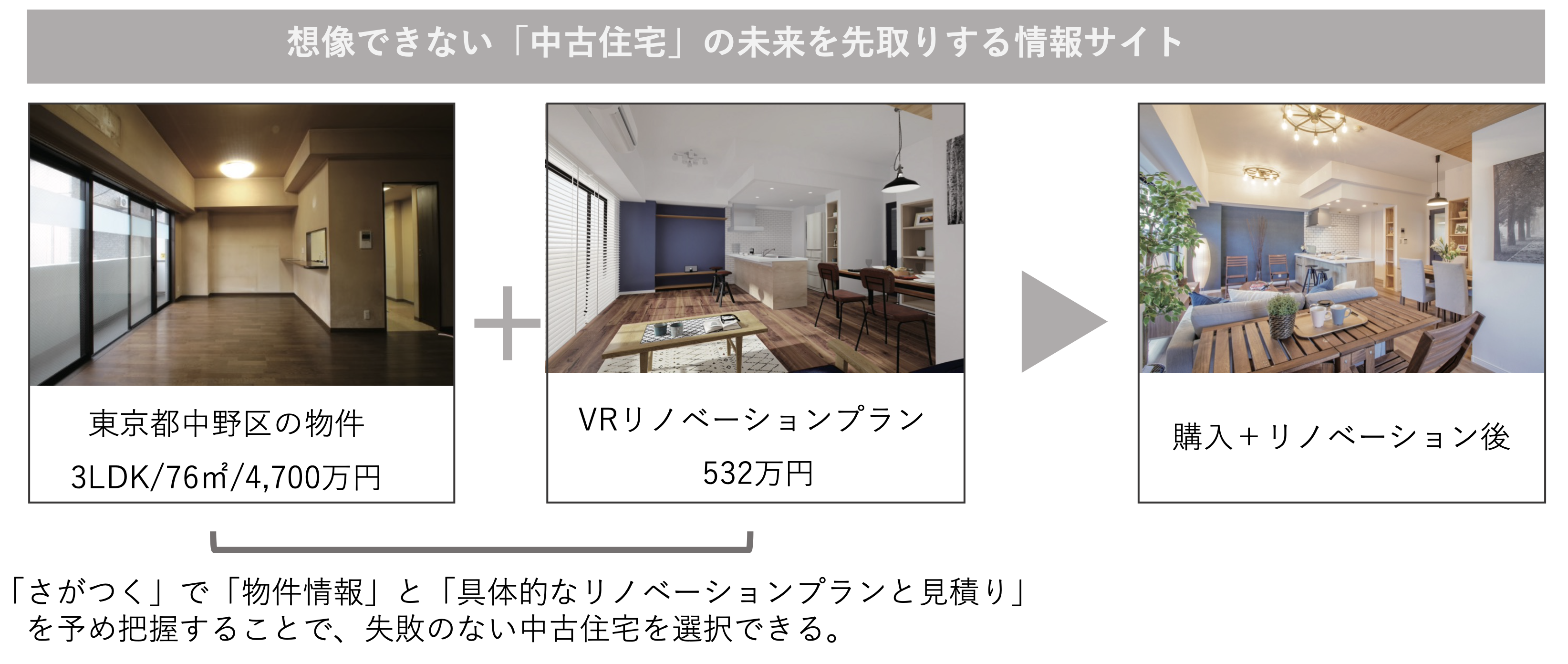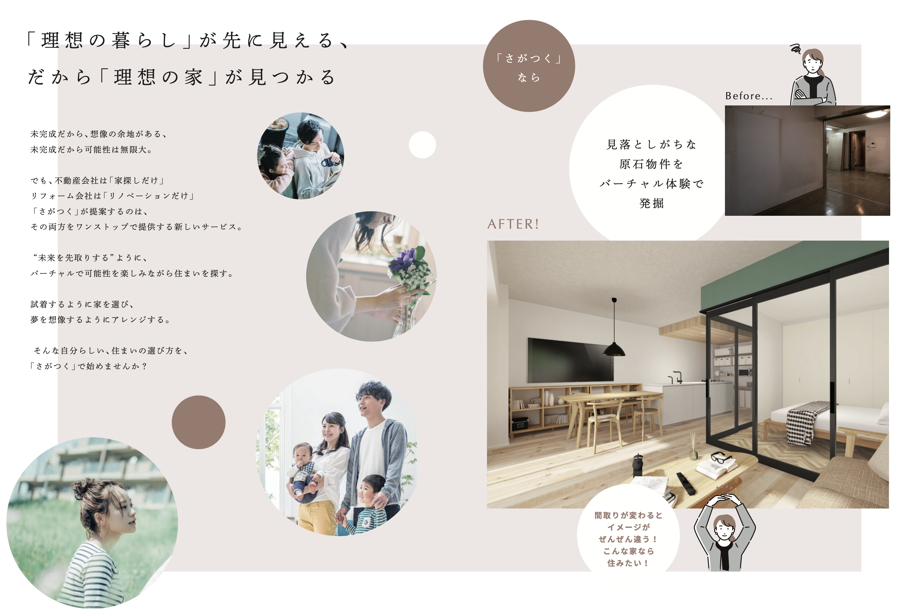 全物件に「VRリフォームプラン」と「見積り」が掲載され、VRを歩ける中古物件サイト「さがつく」が正式ローンチ