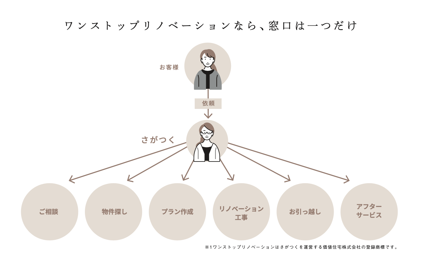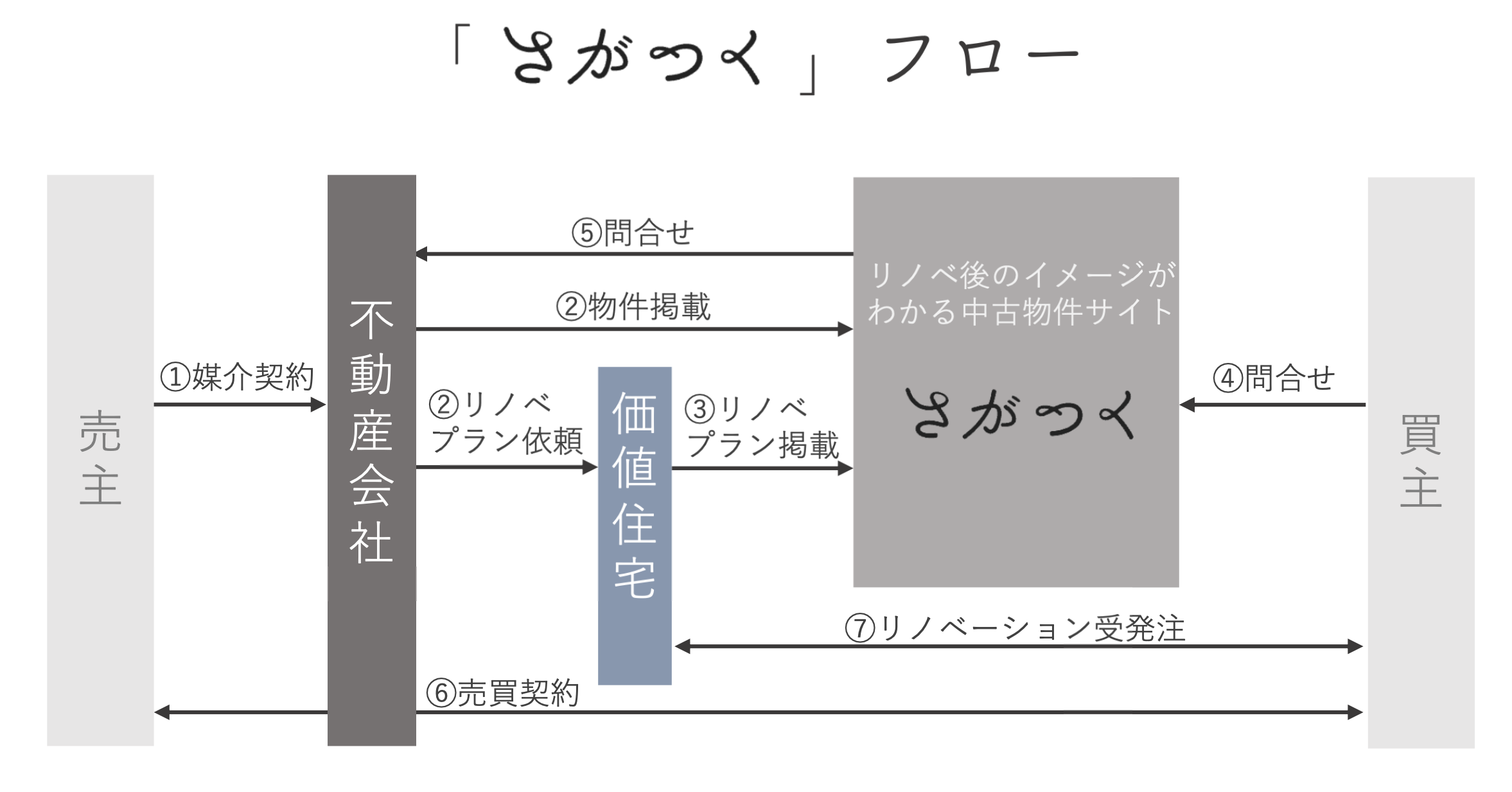 「良い物件選び」と「良いリノベーション」は一つのストーリーとして、「物件選び(さがす)」と「リノベーション(つくる)」を、サイト上で同時に情報入手できる「さがして、つくる」サイトです。