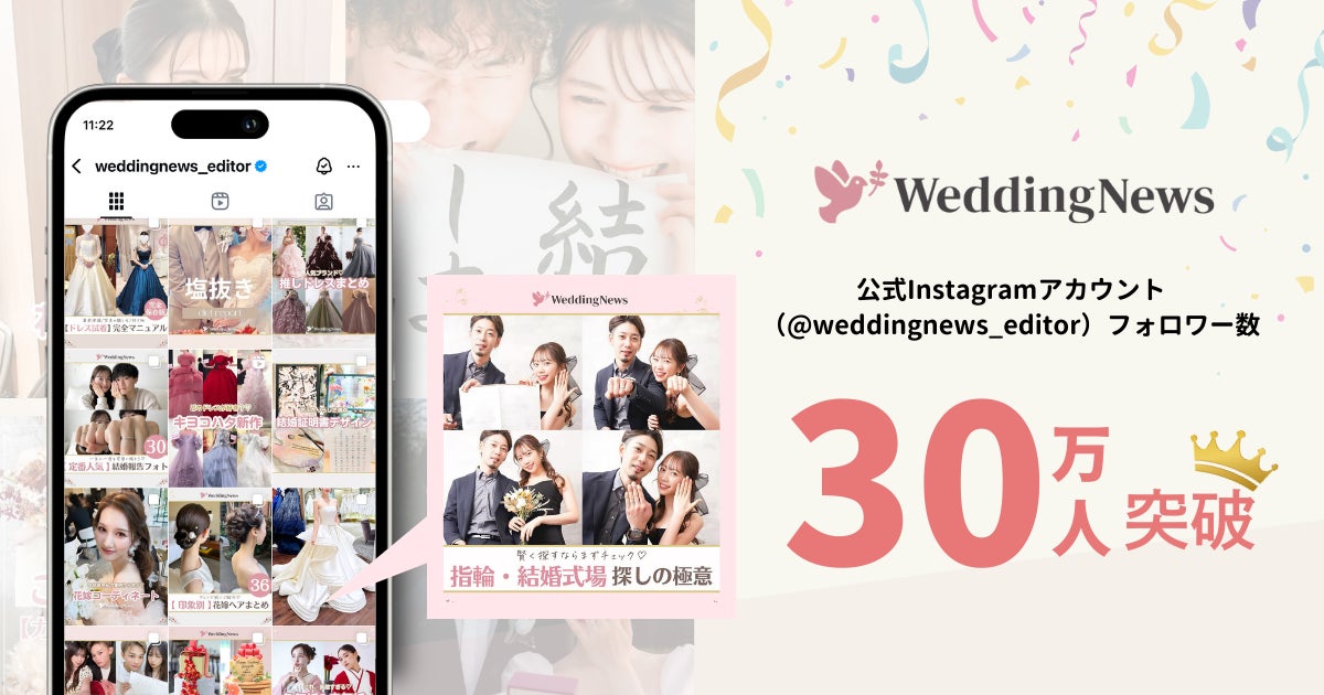 Z世代向け結婚準備アプリ『ウェディングニュース』を運営するオリジナルライフ株式会社は、インスタグラムアカウント@weddingnews_editorの総フォロワー数が30万人を突破したことを発表した