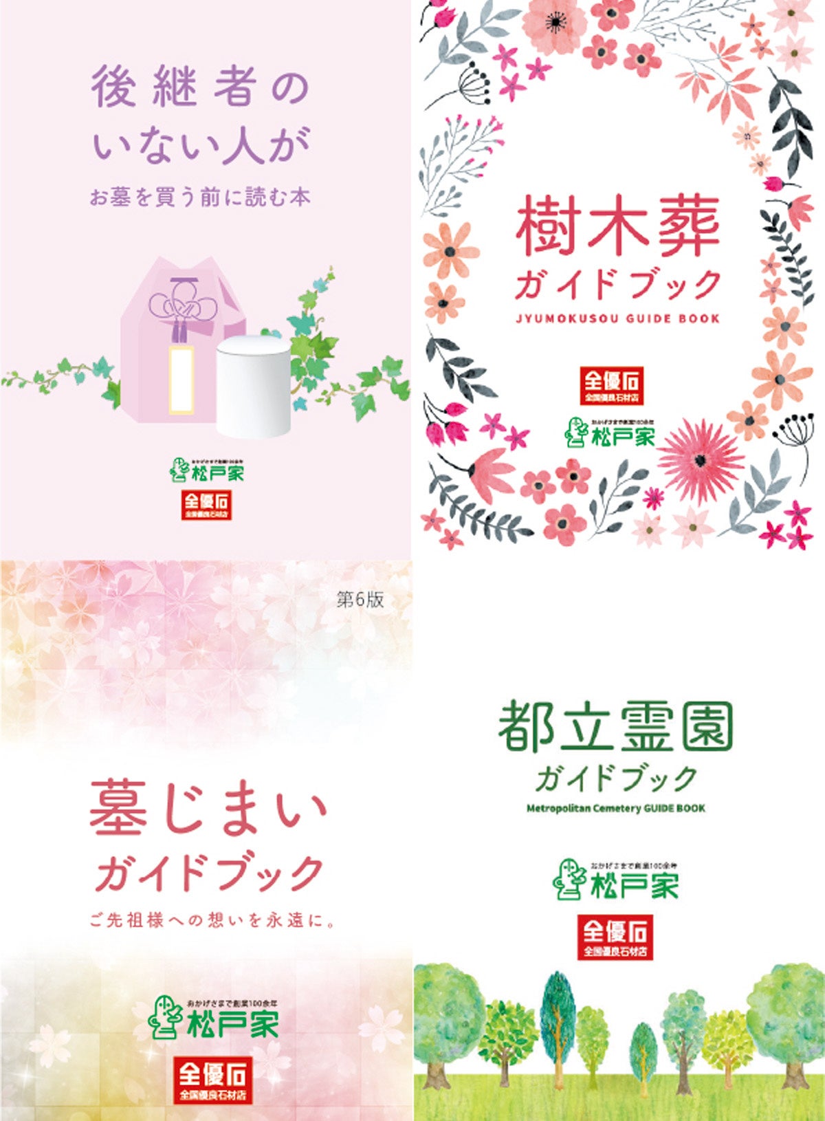 読書の秋に、お墓のことを学んでみませんか。この度、松戸家ではお墓に関するオリジナルガイドブックシリーズをプレゼントするキャンペーンを開催します。累計50,000部超発行のガイドブックシリーズは「樹木葬ガイドブック」「墓じまいガイドブック」「自宅墓・自宅供養ガイドブック」「後継者のいない人がお墓を買う前に読む本」の4タイトル。ご希望の方全員に4冊まとめてプレゼント!(無料)ご気軽に応募ください。