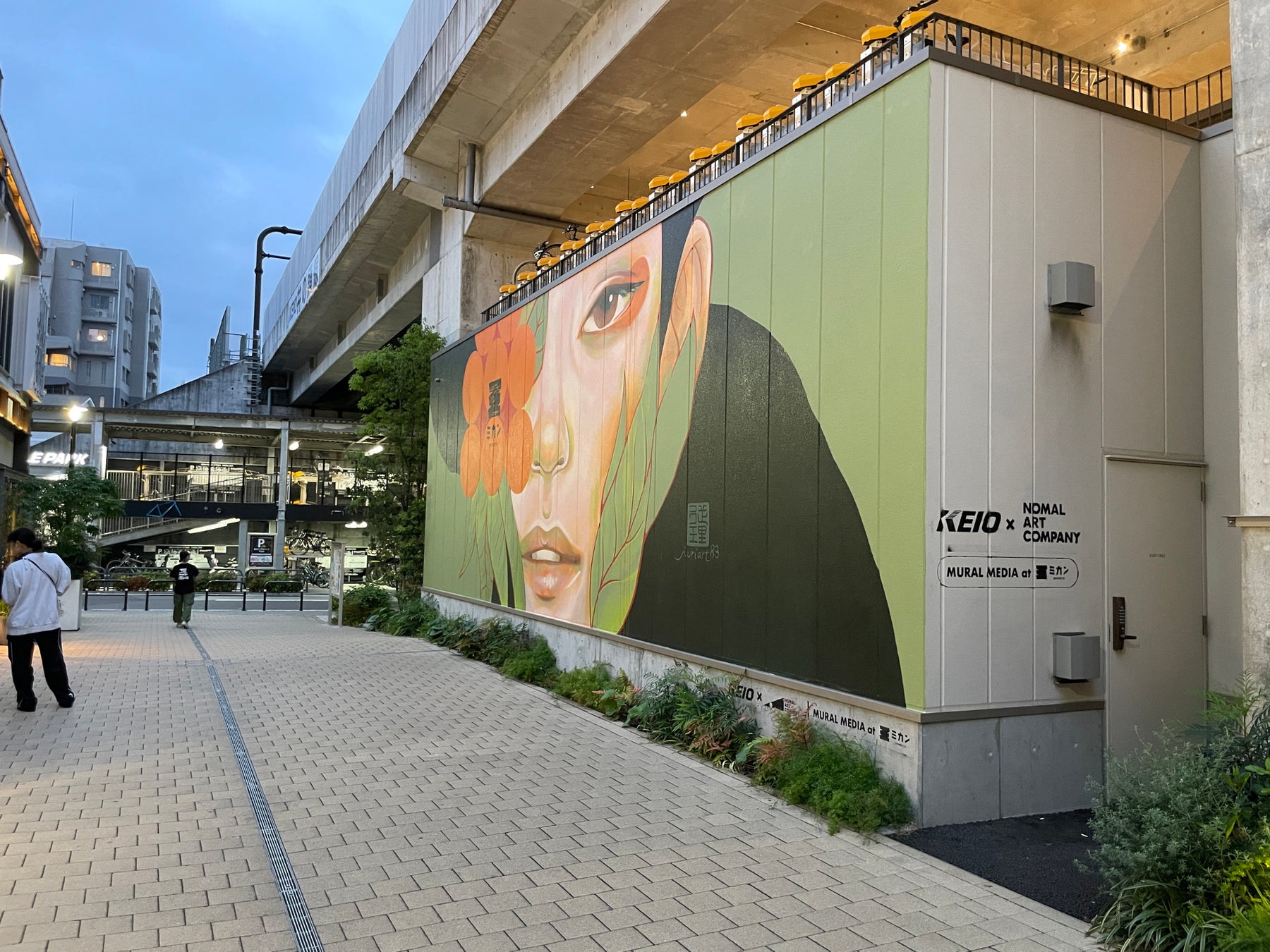その第一弾が「MURAL MEDIA at ミカン下北」(住所:〒155-0031 東京都世田谷区北沢2丁目6−4)となっています。この壁面は京王電鉄の協力のもとNOMAL ART COMPANYが運営をしており、2023年11月より個性的な壁画をアーティストが描くなど下北沢の人の目を楽しませてまいりました。