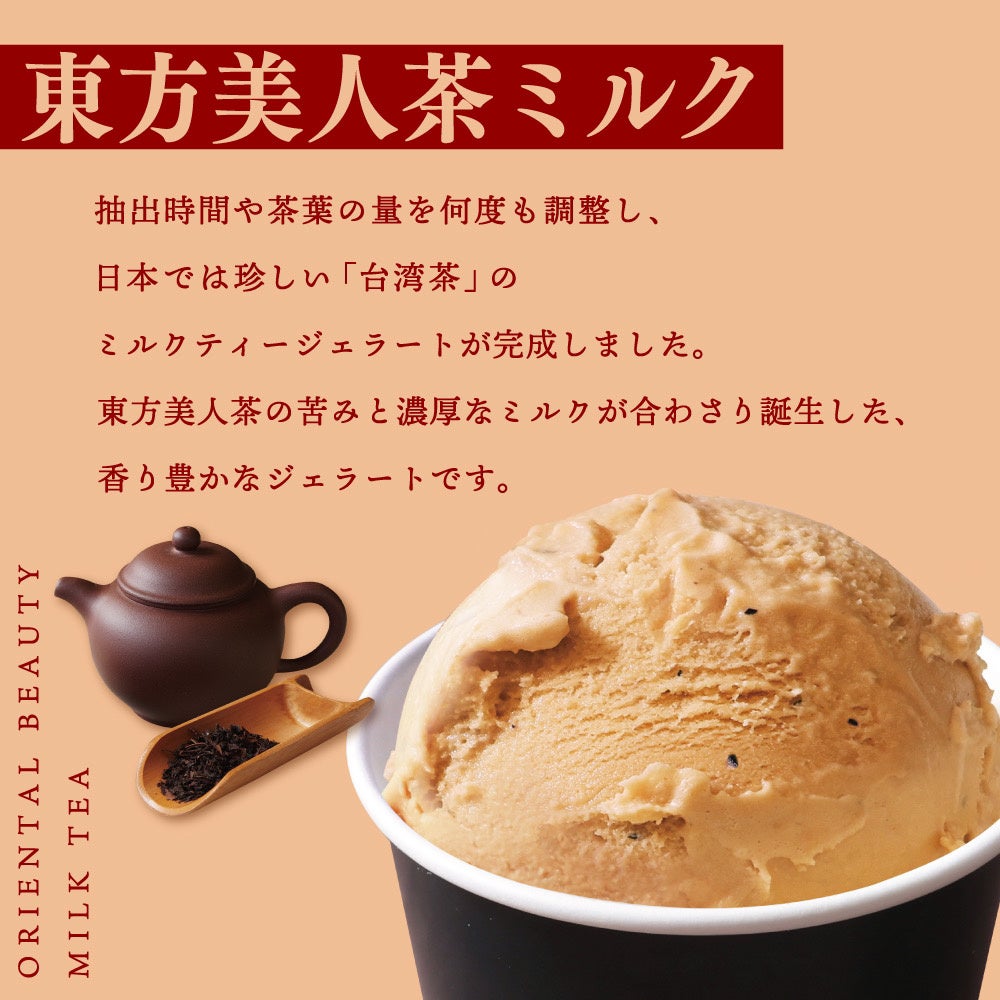 東方美人茶の苦味と濃厚なミルクが合わさり誕生した、香り豊かなジェラートです。