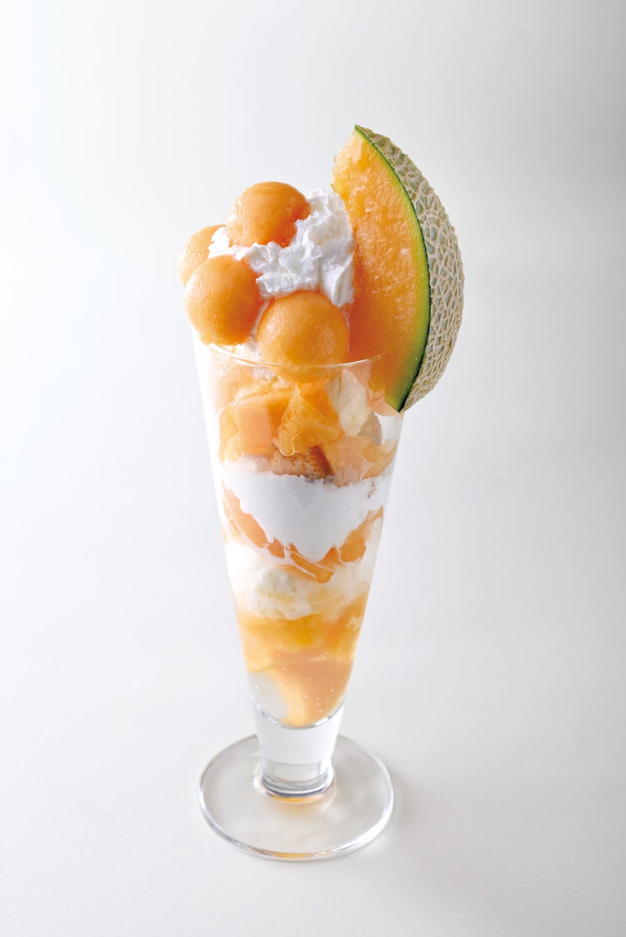 風味豊かなココナッツのアイスクリームとパンナコッタ、ジューシーな2種のメロンが甘く解け合う南国気分高まるパフェ。