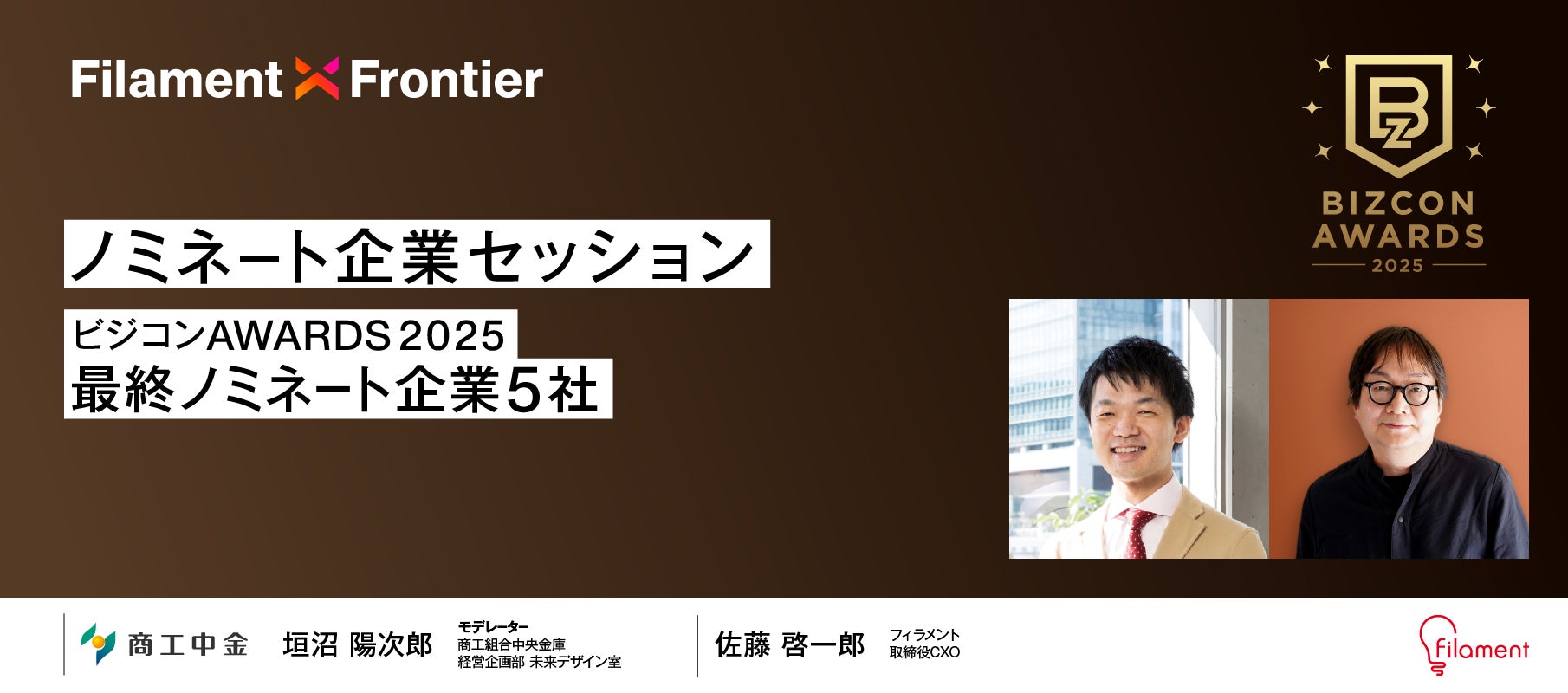 ビジコンAWARDSは、企業内の事業提案制度であるビジネスコンテストを支える事務局の取り組みを評価するアワードです。社員のアイデアを新規事業として形にするビジコンの成否を左右するのは、事務局の企画力と、応募者を支える粘り強さにあります。本アワードでは、そうした事務局の努力を評価・可視化し、ノウハウの共有を通じて企業変革を後押しする環境づくりを目指します。Filament X Frontierと同時開催されるビジコンAWARDS 2025を通じて、ビジコンの意義と事務局の役割を広め、「挑戦を楽しめる人と組織」を日本中に増やしていきます。