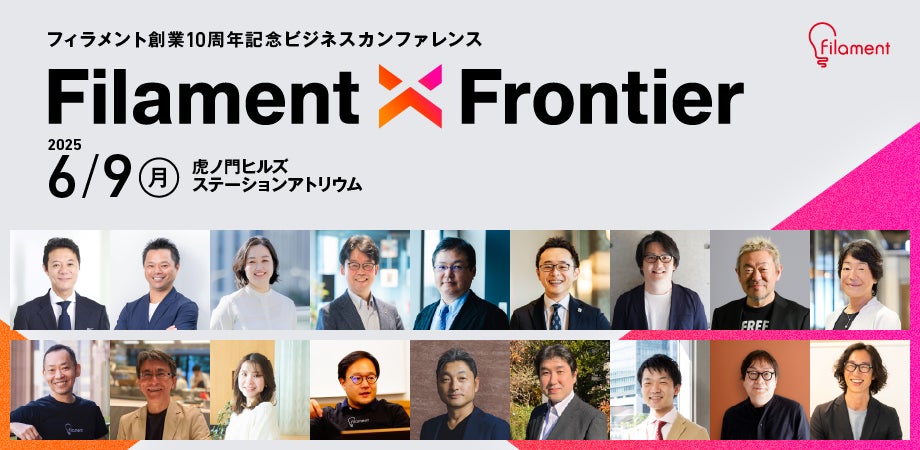 企業の新規事業創出を支援するフィラメント(本社:大阪府大阪市、代表:角 勝 以下、フィラメント)は2025年6月9日に虎ノ門ヒルズにて開催する、創業10周年を記念したビジネスカンファレンス「Filament X Frontier」(読み:フィラメント クロス フロンティア)のセッションテーマおよび登壇者情報を公開しました。