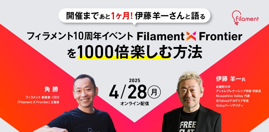 フィラメント創業10周年記念カンファレンス「Filament X Frontier(フィラメント・クロス・フロンティア)」に向けて、プレイベントを4月28日(月)にYouTubeライブで緊急開催!