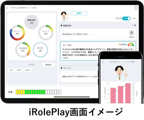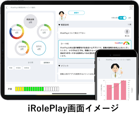 『iRolePlay』は、iPhone・iPadでAI顧客を相手に話す練習をする自主トレアプリで、学習者はいつでもどこでも、オフラインでも対話練習が可能。知識のアウトプット・トレーニングとして学習者自身が改善点を確認でき、教育者は個人に合った効率的な指導が可能となるもので、AI活用で効率的かつ効果的な対話教育を実現するサービスであると、高く評価されました。