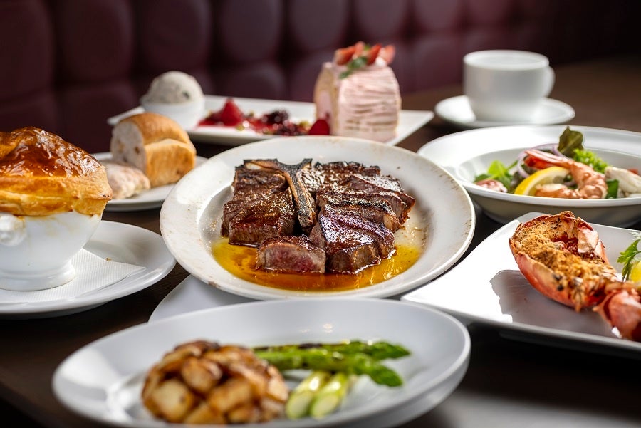 ○継承される調理技術-「ベンジャミン ステーキハウス」のステーキマスターであり総料理長のアーテュロ・マクレッドから指導を受けたシェフたちは、ステーキハウス・スタイルの調理法(外側はカリッと焼き上げて内側はあくまでもしっとり)を習得し、お客さまの好みにぴったりの料理に仕上げることに強い誇りを感じています。国内では唯一ここにしかない高温デッキブロイラーで、一気に外側を焼き上げてうまみを閉じ込め、ジュージューと音を立てる熱々の陶器のお皿に乗せた、絶妙な調味と焼き加減のステーキがテーブルに運ばれます。