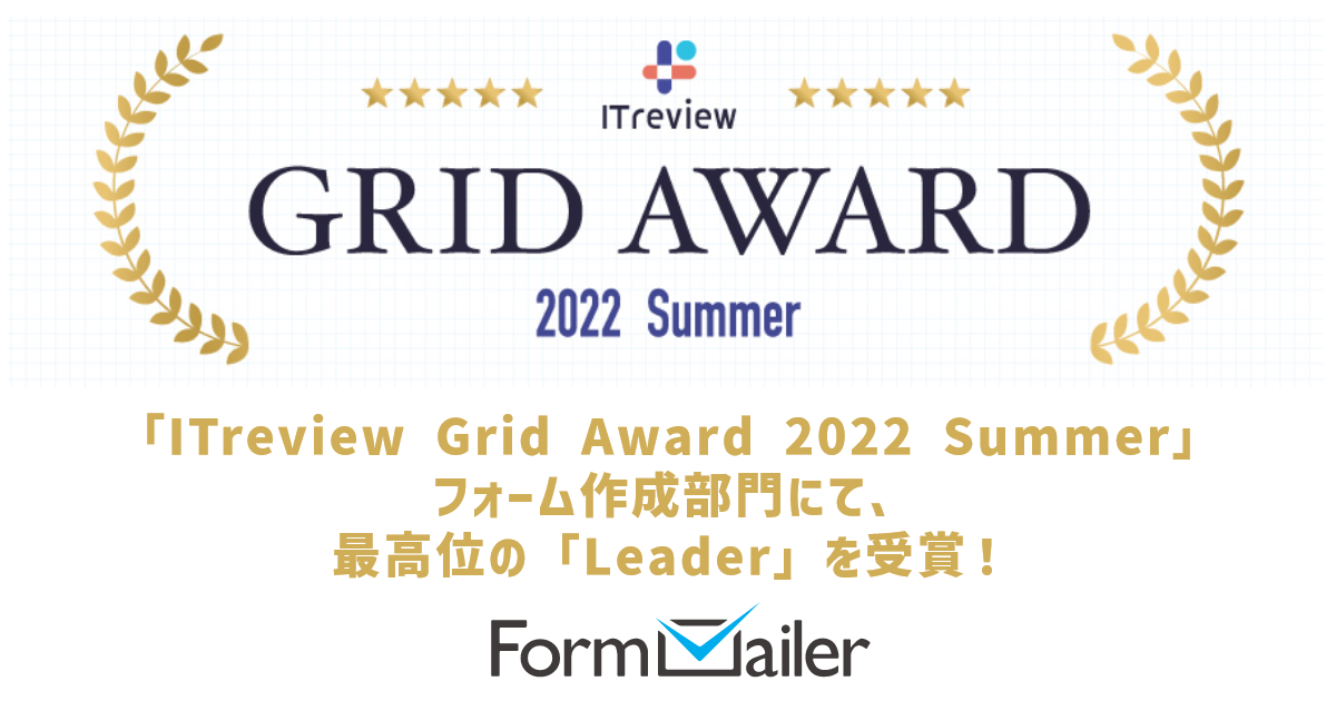 クラウド型フォーム作成サービス「フォームメーラー」が「ITreview Grid Award 2022 Summer」フォーム作成部門にて、最高位の「Leader」を受賞!