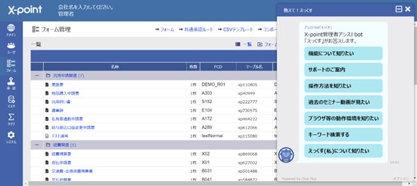 この度の業務提携において、AIチャットボット「ChatPlus(チャットプラス)」を、エイトレッドが提供しているワークフロークラウド「X-point Cloud(エクスポイントクラウド)」に組み込み、顧客が製品サポートを容易に活用しやすくすることで、顧客利便性と利用価値の向上(カスタマーサクセス)につなげます。ワークフローシステムにチャットボット機能を組み込むのは業界初(エイトレッド調べ)で、双方とも新たな需要を期待しており、サービス開始時期は2022年7月中を予定しています。