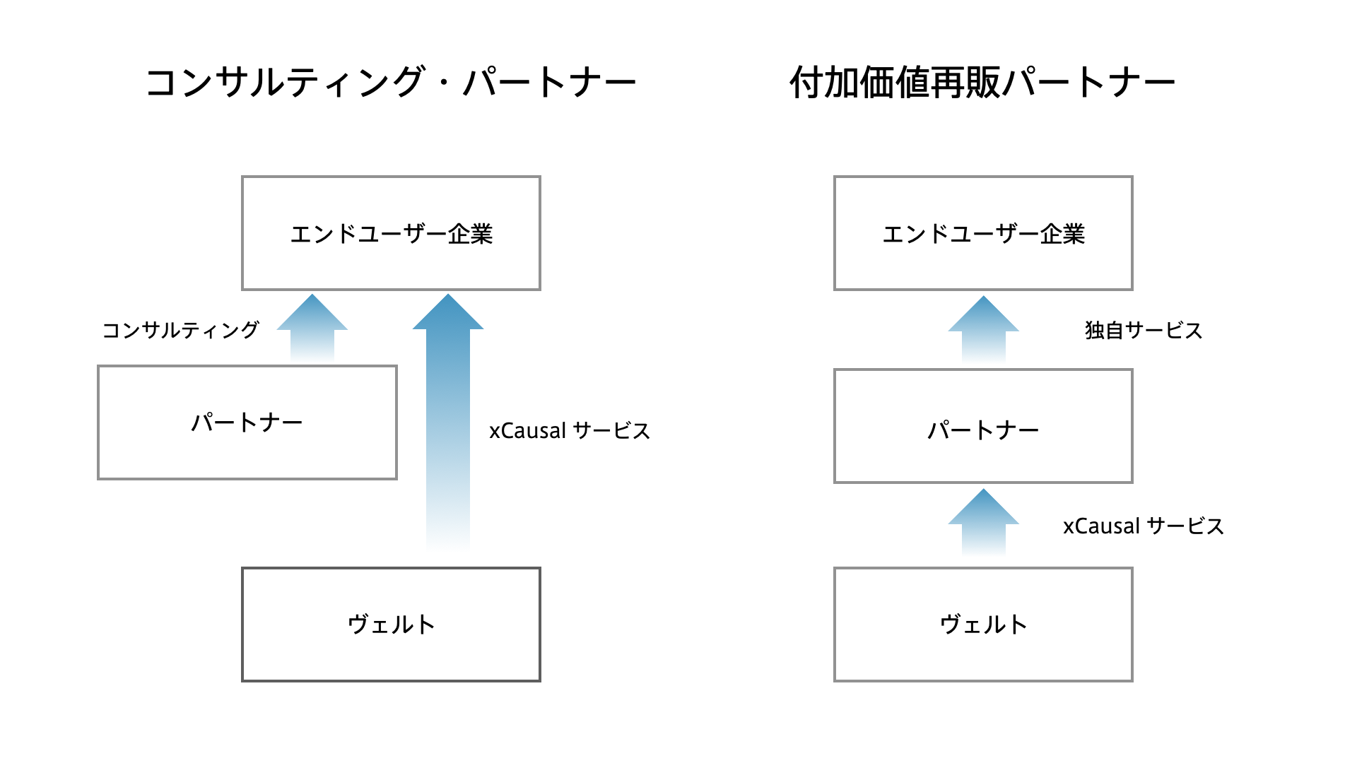 ヴェルトは、「xCausal™」のパートナー・プログラムとして2種類のモデルを展開し、各産業や領域に専門知識を持つパートナー企業と連携してまいります。
