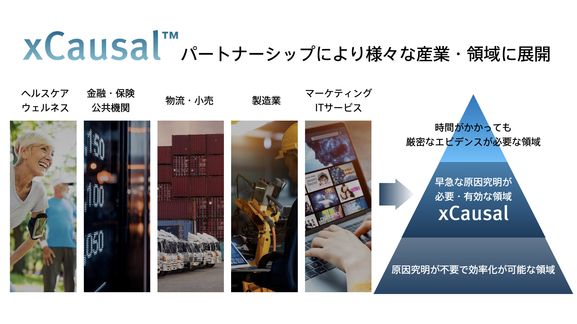 ヴェルトは、データ活用により因果関係を素早く推定することで、課題解決策の発見や新たな仮説発見を加速する因果推論プラットフォームとして、ヘルスケアやウェルネス領域から、製造、金融、流通など早急な原因究明と解決策が必要な幅広い領域に「xCausal™」を展開しています。