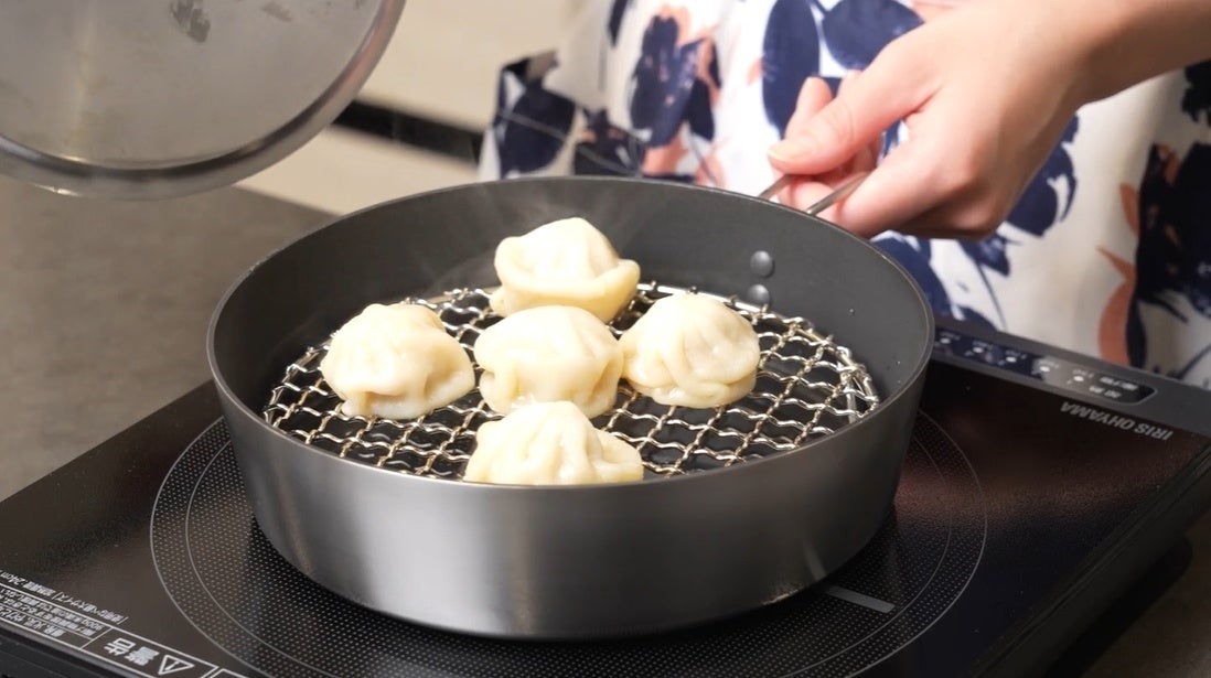 二層鋼クラッドでアルミとステンレスの良いとこどり。炒める・煮る・蒸す。スチーム機能付きでどんな料理もこれ1つで作れる万能なフライパン。