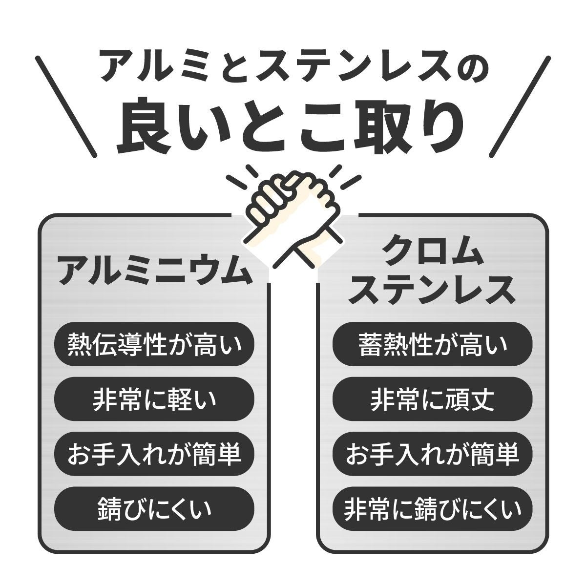 ・アルミとステンレスの良いとこ取りした二層鋼クラッドを使用しています。