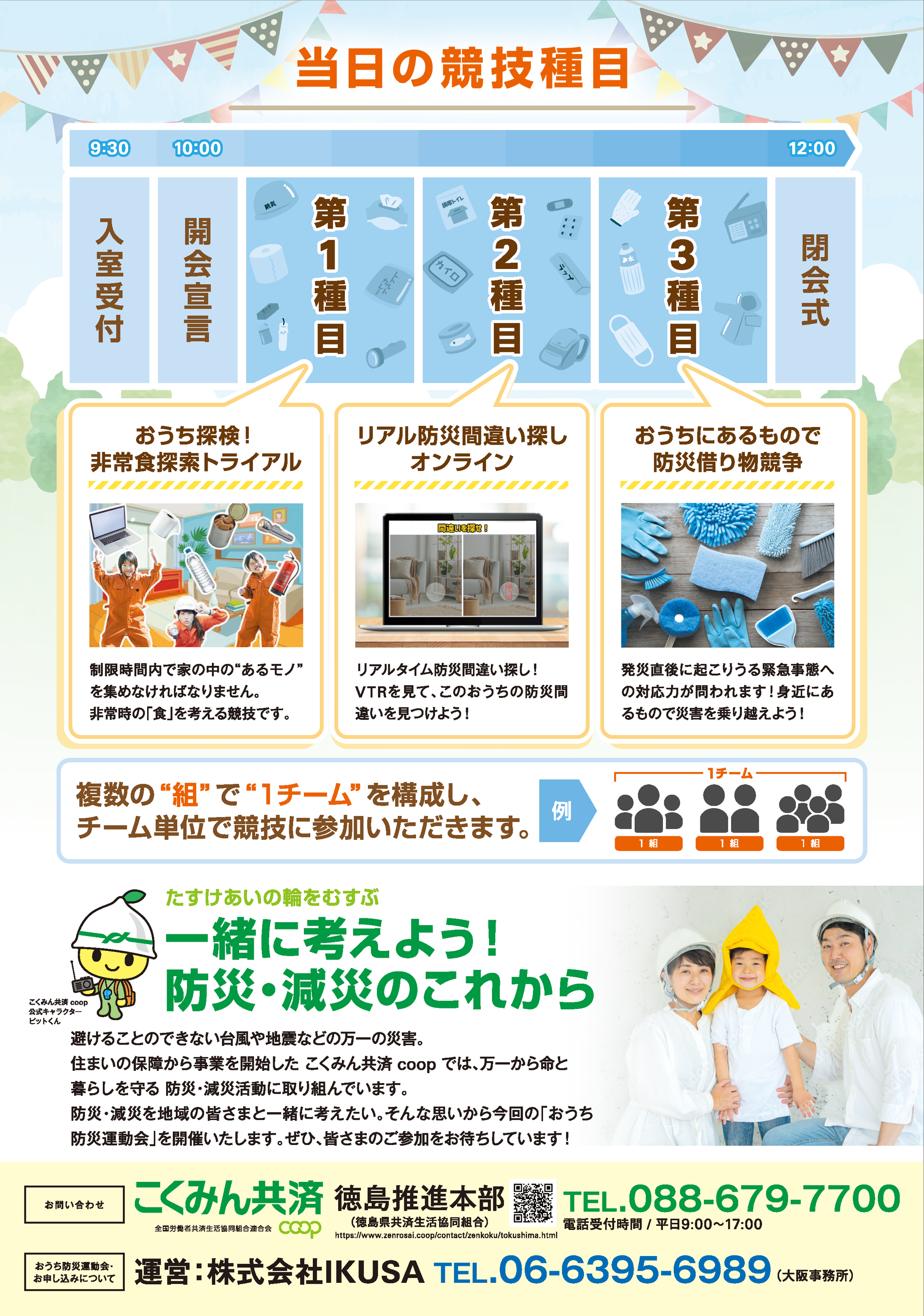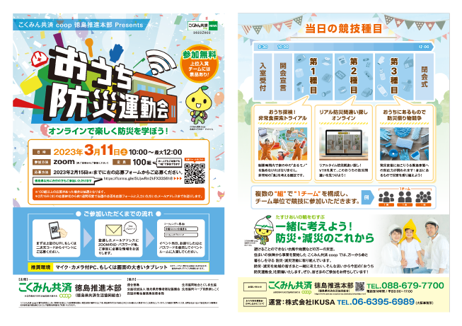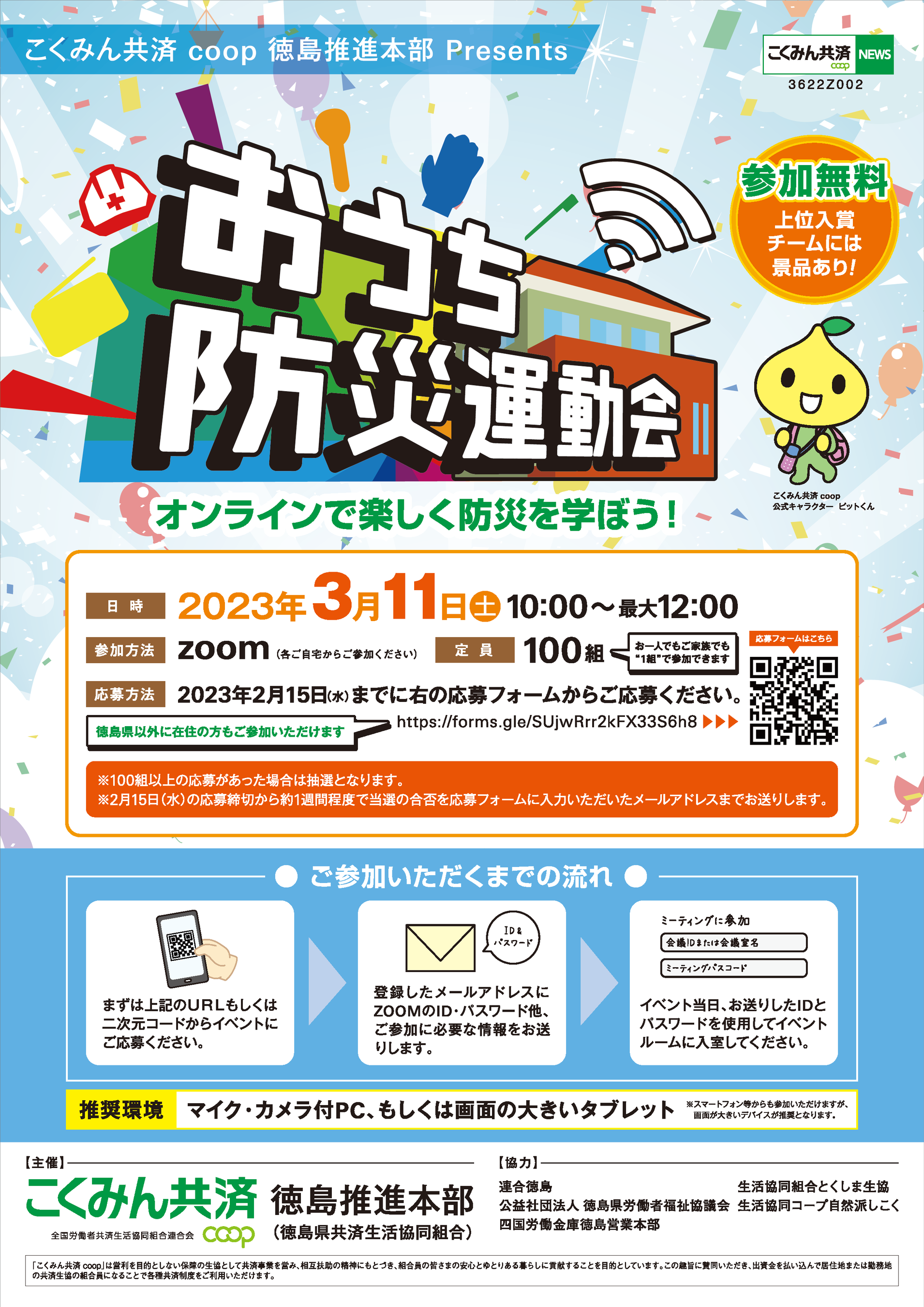 【楽しく防災を学べるオンラインイベント】にこくみん共済 coop 徳島推進本部 Presents おうち防災運動会を3月11日(土)に開催