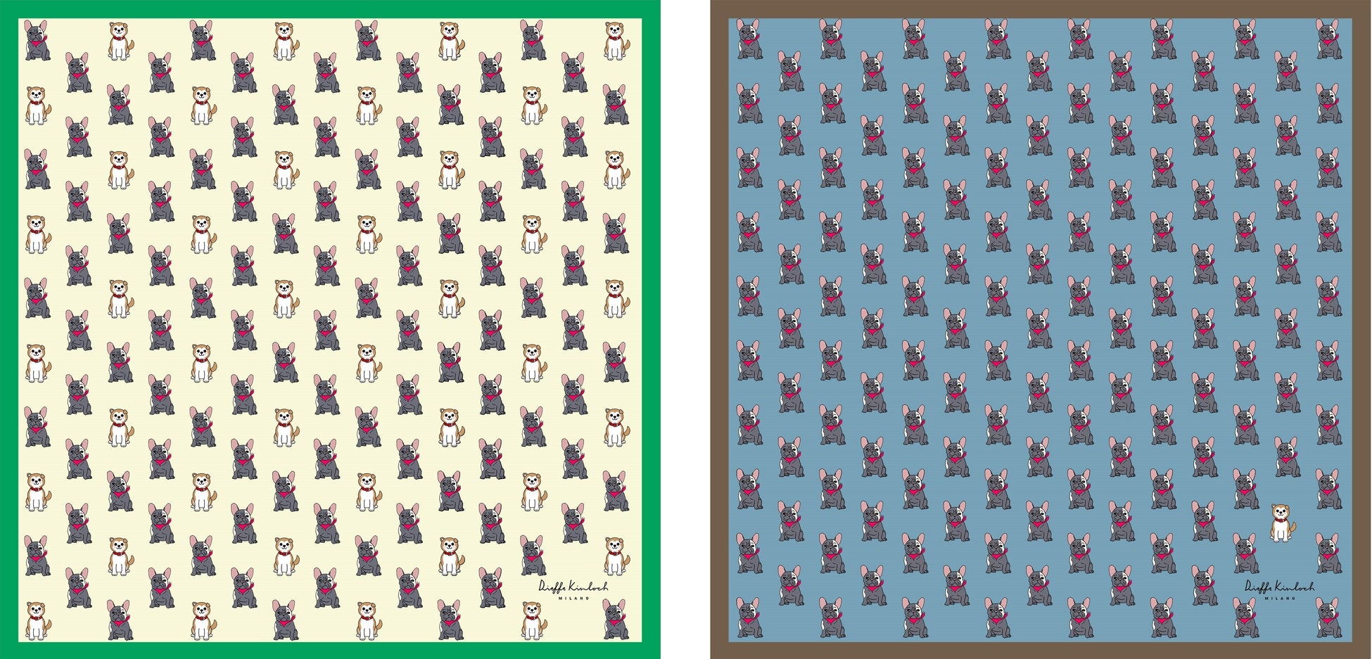 イタリア・ミラノ発のブランド<ディエッフェ キンロック>と東急百貨店のマスコットキャラクター「東横ハチ公」のコラボレーションハンカチが2種類、登場。フレンチブルドッグと東横ハチ公を一緒にデザインした、2種類のタイプを発売します。一つは東横ハチ公が一面にたくさん描かれたタイプで、もう一つはフレンチブルドッグに隠れているタイプです。