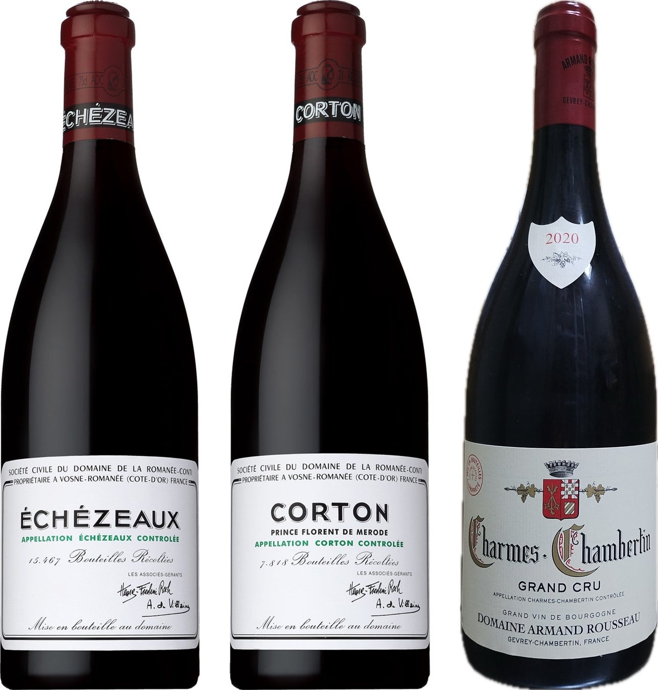 各店共通の「エシェゾー」「コルトン」(ヴィンテージは異なります)と、各店ごとに異なる1本を合わせた、3本セットです。