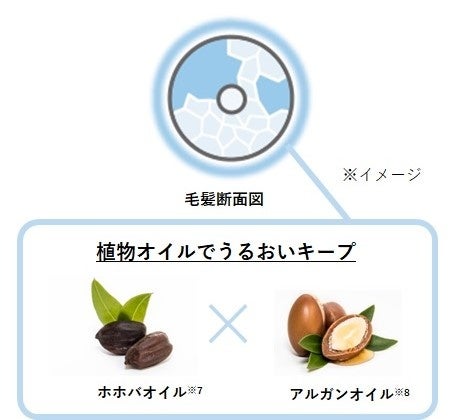 剥がれたキューティクルを補修しながら、植物オイル※7・8で保護フィルムを形成。髪表面を包み込むことで、日々のダメージから髪を守りながらうるおいを与えます。