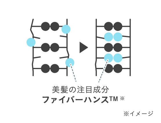 ※1 骨格とは髪内部の密度のこと ※2 髪内部が空洞化した状態 ※3 髪内部のたんぱく質が不均一な状態 ※4 ヒドロキシプロピルグルコナミド、グルコン酸ヒドロキシプロピルアンモニウム(すべて毛髪補修成分) ※ファイバーハンス™はAshlandの登録商標です。 ※5 ジラウリン酸セラミドNG ※6 メドウフォームエストリド ※7 ホホバ種子油 ※8 アルガニアスピノサ核油 (※5~8は保湿成分)
