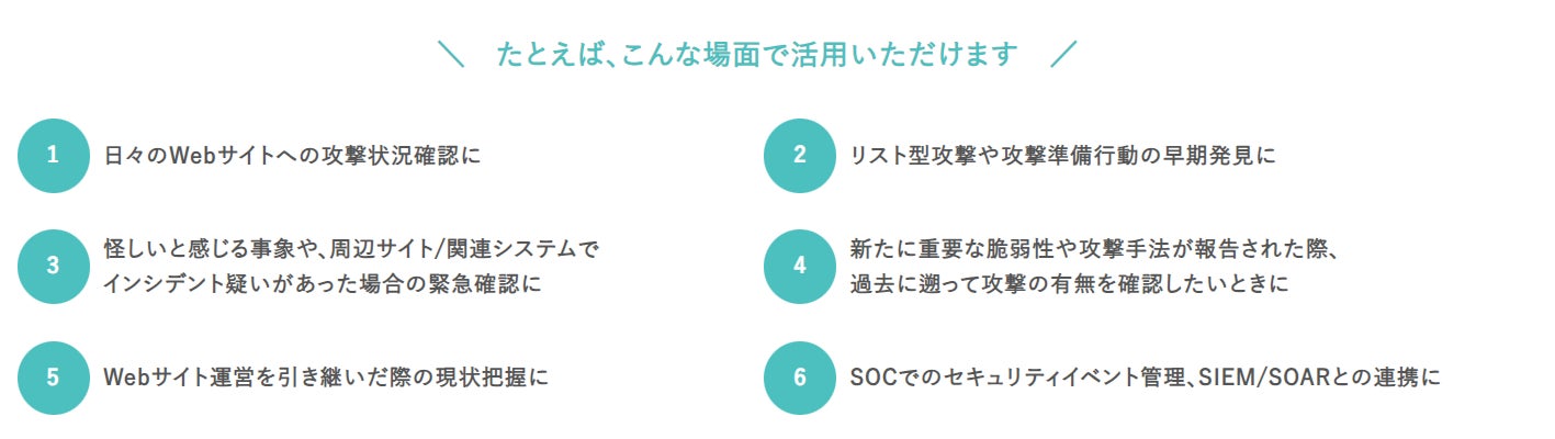 Webサイトのアクセスログには、訪問者のIPアドレス、訪問日時、リクエストしたページ、利用ブラウザ、リファラーなどの情報が含まれています。これをWebセキュリティの専門的な視点で分析することで、Webアプリケーションの脆弱性を狙った攻撃の痕跡やその兆候、不正なログイン試行、一般ユーザーと違う異常なパターンの通信、自動化された疑わしいアクセスなどを抽出でき、様々なサイバーセキュリティ上のリスク回避・軽減に繋がります。こうしたアクセスログ分析の重要性は、近年、様々なガイドライン(*1)でも取り上げられており、セキュアなWebサイト運営の基本要素として広く認識されつつあります。