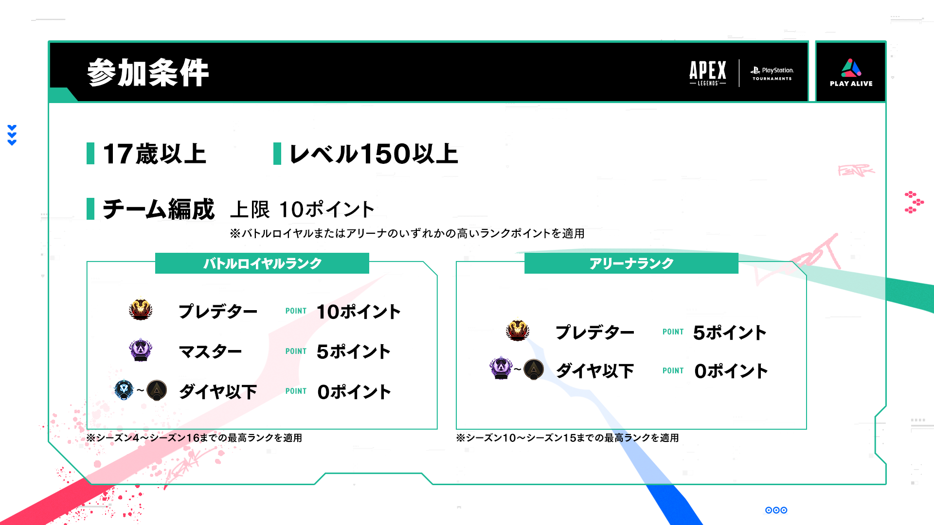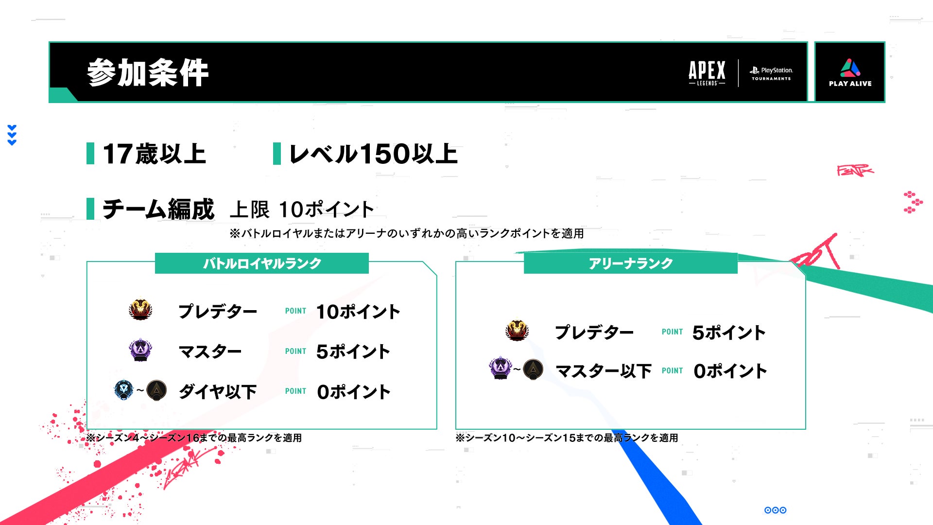 また、「PLAY ALIVE : Apex Legends Vol.7」の詳細はついては、公式Twitterおよび公式Discord「Apex Legends | PlayStation Tournaments」にて告知いたします。