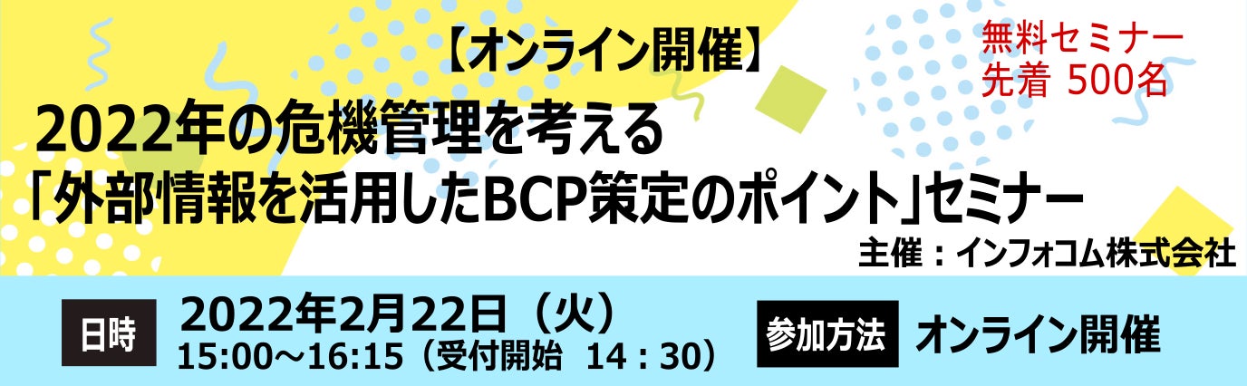 【2/22法人向けオンライン開催】2022年の危機管理を考える「外部情報を活用したBCP策定のポイント」セミナー