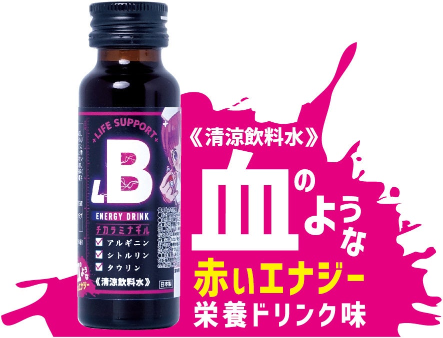 SNSで話題となった「血のりシャンプー」のメーカーが第二弾を開発!?驚愕の見た目、真っ赤な『エナジードリンクLB』を新発売!