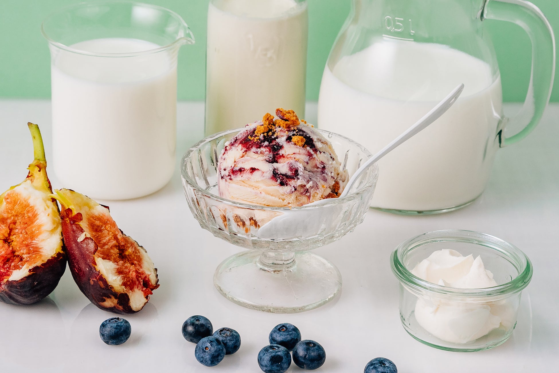 ハンデルスベーゲンでは、これまでにもチーズケーキをモチーフにしたフレーバーをいくつもご提供し、いつも大変ご好評をいただいております。今シーズンにご用意したのは、ミルク感とチーズ感の風味をしっかりと楽しんでいただくために、いちじくとブルーベリーという、チーズと相性の良い具材を加えたレアチーズケーキ風のアイスクリームです。