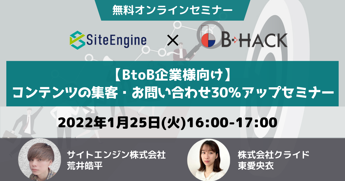サイトエンジン株式会社 1月25日に株式会社クライドとの共催オンラインセミナー ” 【BtoB企業様向け】コンテンツの集客・お問い合わせ30%アップセミナー” を開催