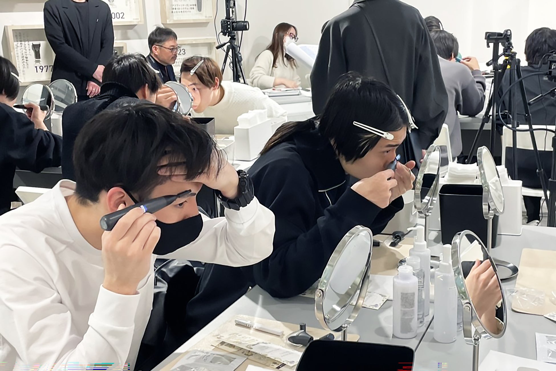 参加者のうち9割以上が10代後半~20代前半の男性で、Panasonic Store LIVEとInstagram Liveでのオンライン配信時は、最大同時接続者数が4,000人を超える盛況ぶり。LIPPS BOYやパナソニックの商品を用いて、眉の整え方やベースメイクのコツを伝授しました。セミナー中はアットホームな雰囲気で、参加者と講師との双方向でコミュニケーションを取りながら行われました。時折会場からは笑いの声があふれ、分からない点や、うまくいかない点などがあった際には、平田が直接レクチャーしながらセミナーは進行。ご来場者いただいた皆さまは、セミナー後も館内を回遊され、美顔器やムダ毛ケア商品を興味津々で体験しながら、笑顔で会場を後にしている姿が印象的でした。