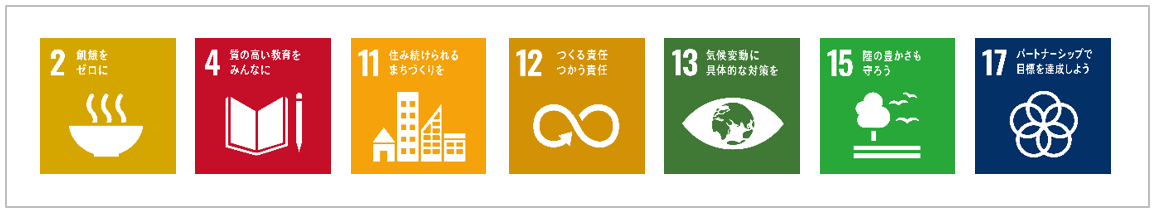 国連サミットで2015年に採択された2030年に向けての国際開発目標「持続可能な開発のための2030アジェンダ(SDGs)」。本プロジェクトでは、特に以下の7つの目標に寄与するものです。また、当社のサステナビリティへの取り組みについては、以下の通りです。