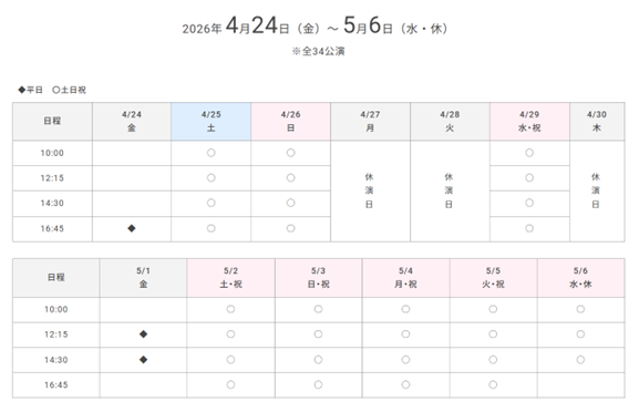 日程:2026年4月24日(金)~5月6日(水・振休)※全34公演 場所:渋谷ヒカリエ 9 階ヒカリエホール
