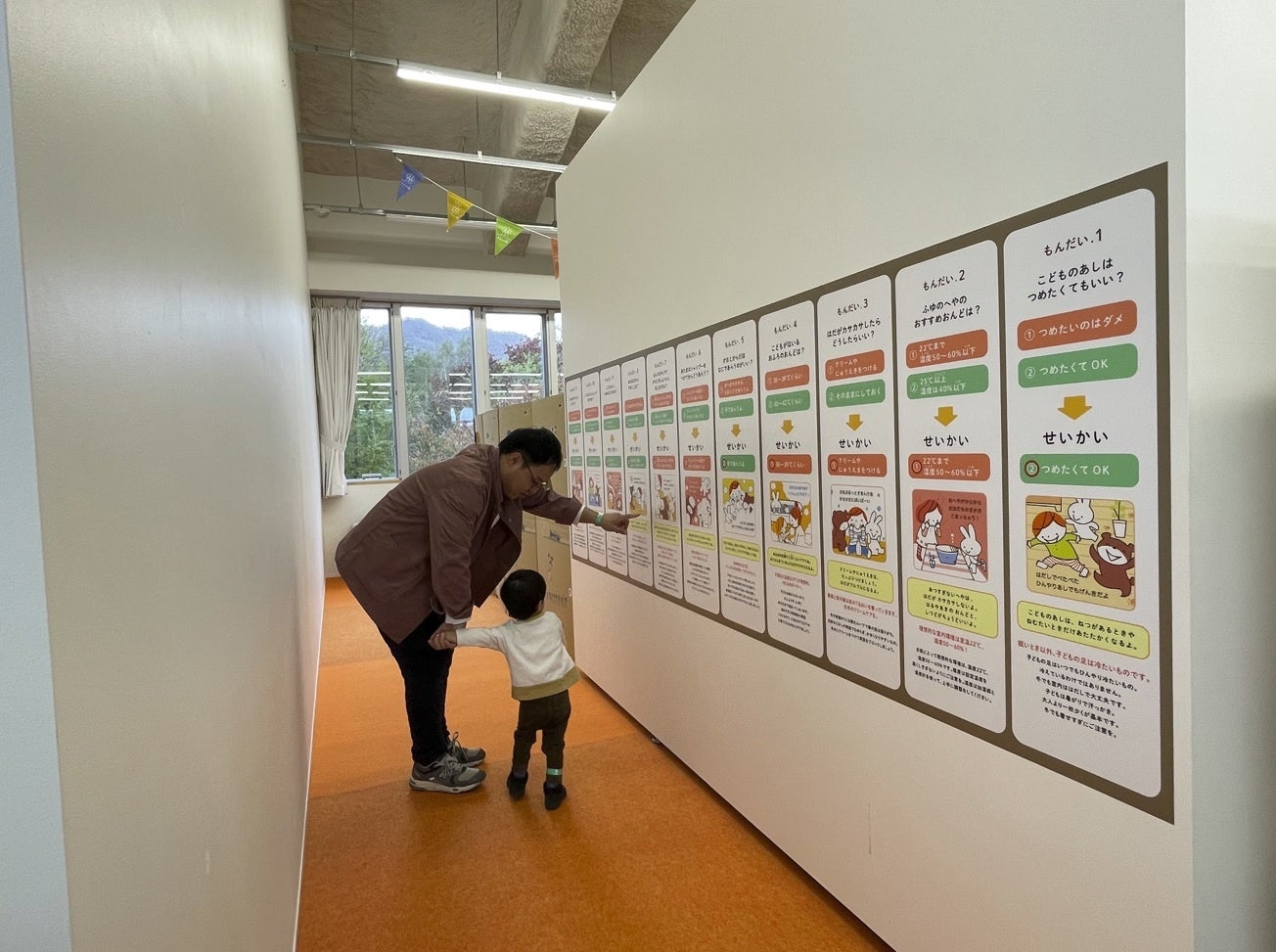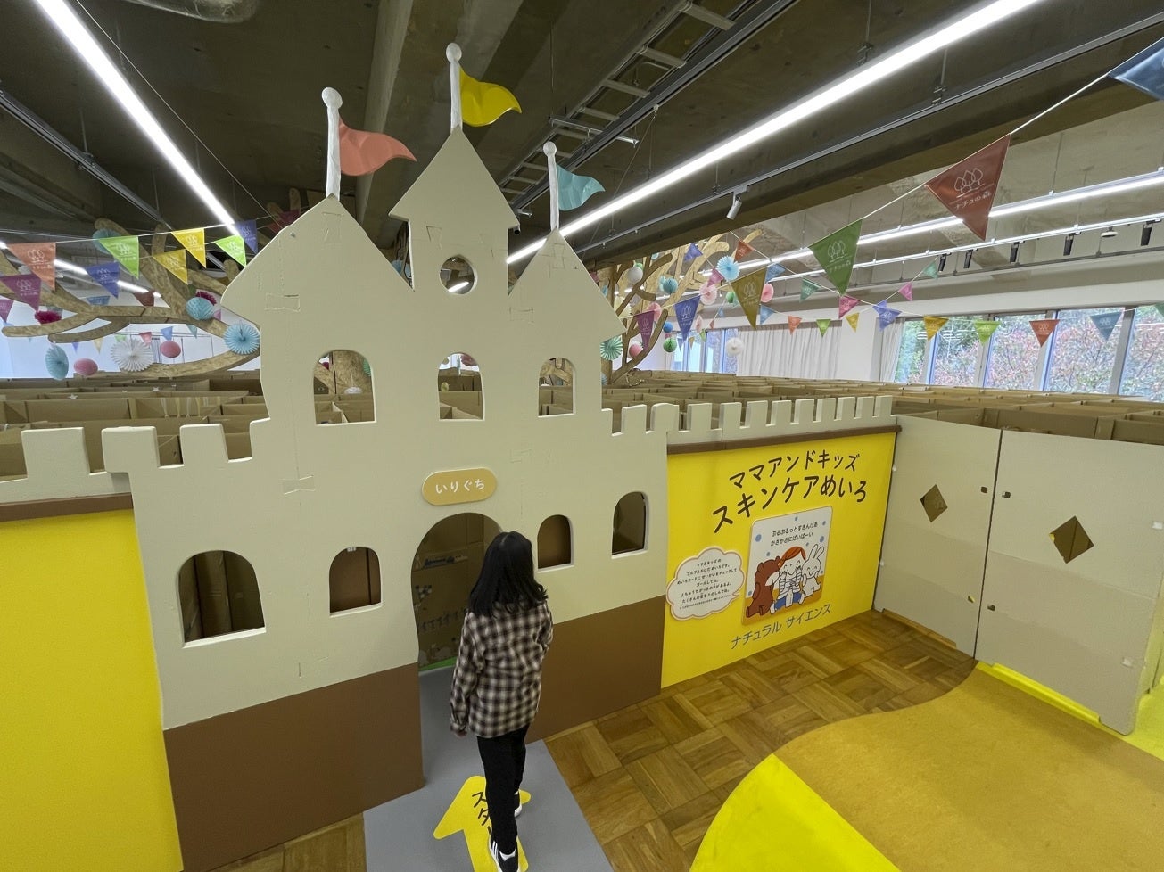 対象年齢は3歳以上。ダンボールを組み合わせて作った迷路の中には、スキンケアに関するクイズを全11問設置。楽しく遊びながら、スキンケアの正しい知識を学ぶことができます。