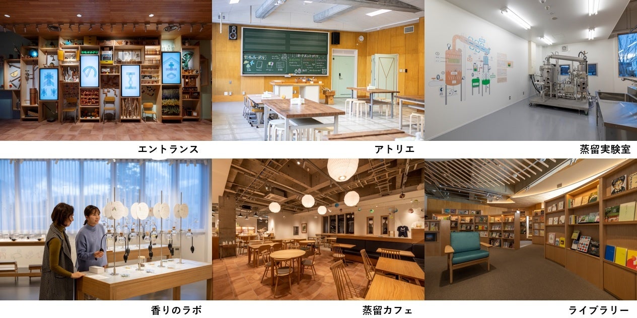 「自然と科学のミュージアム 森の工舎」は廃校となった旧虎杖中学校をリノベーションしてできた施設です。旧虎杖中学校の面影を色濃く残す館内には、フレグランスデザイナー監修の「香りのラボ」、本格的な蒸留を間近で体験できる「蒸留実験室」、知的好奇心を刺激する「ライブラリー」「えほんの部屋」、5メートルの屋根型天井が特徴的な「ギャラリー」のほか、倶多楽湖の湧水を使ったオリジナルドリンクや、理科実験雑貨も取り揃える「蒸留カフェ&ショップ」など、科学体験を通じたさまざまな発見や学びを楽しむことができます。