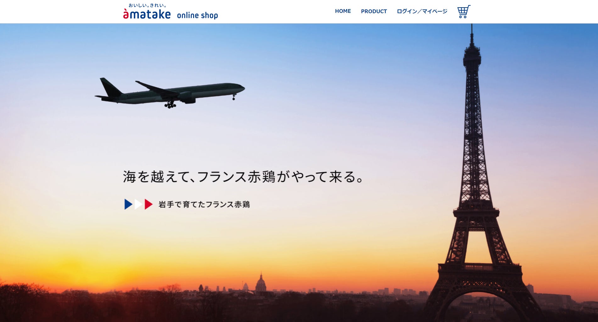 私たちの合言葉である「おいしい。きれい。」と、アマタケの鶏のルーツであるフランスを意識した、シンプルでスマートながら良質さが伝わるデザインやコンテンツに仕上げました。
