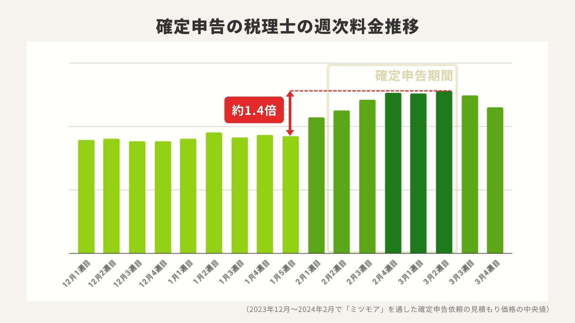 ・2024年確定申告期は、2月最終週から3月2週目にかけ料金が1月の1.4倍に高騰