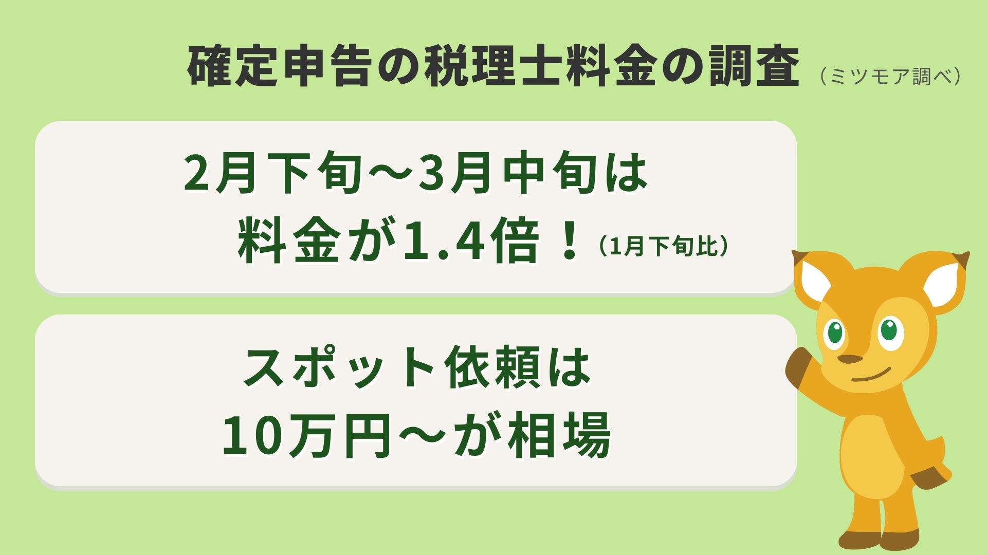 ・税理士費用は年々上昇し、繁忙期(2月下旬~3月上旬)はさらに高騰
