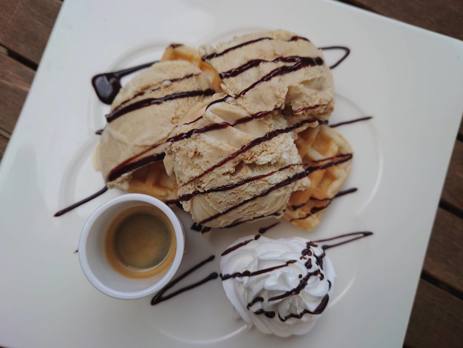 コーヒーアイスとチョコレートの相性は抜群。エスプレッソをかけてお召し上がりください。
