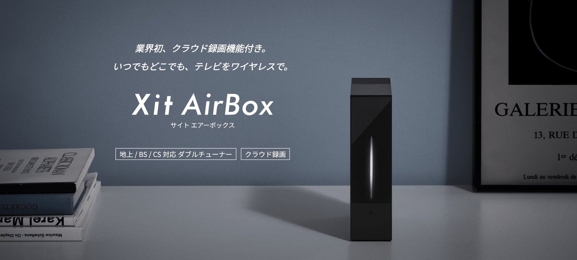 Xit AirBox(サイト エアボックス)シリーズは、地上・BS/110度CSデジタル放送に対応したテレビチューナーです。ご家庭の無線LANルーターとアンテナ線を接続すると、ご家庭内の同じネットワークに接続しているスマートフォンやタブレット、WindowsやMacがテレビになります。また、Android TVにも対応しているのでテレビやモニター、プロジェクターなどの大画面でもご利用いただけます。