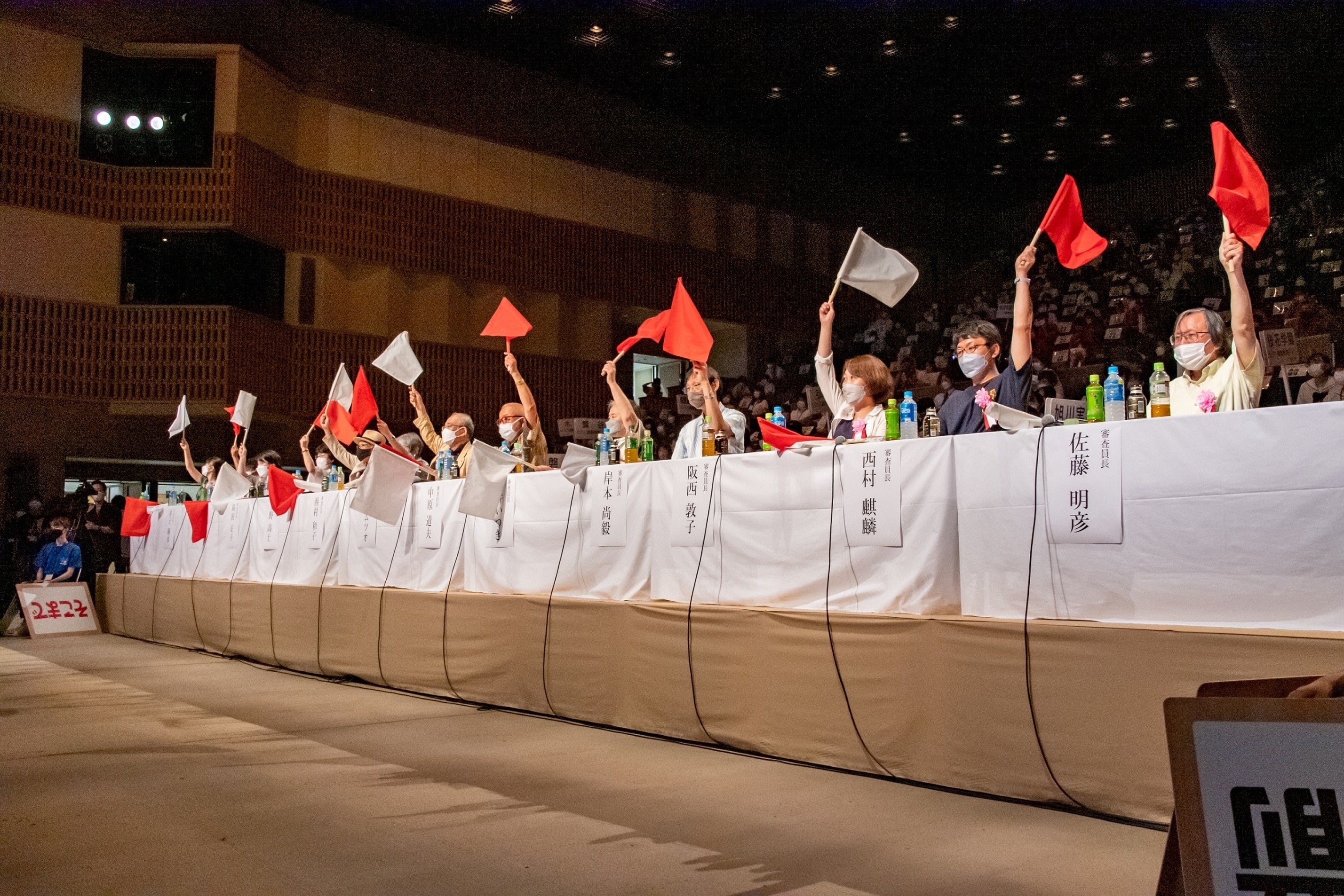 ▲紅白の旗を揚げて判定(写真は25回大会)
