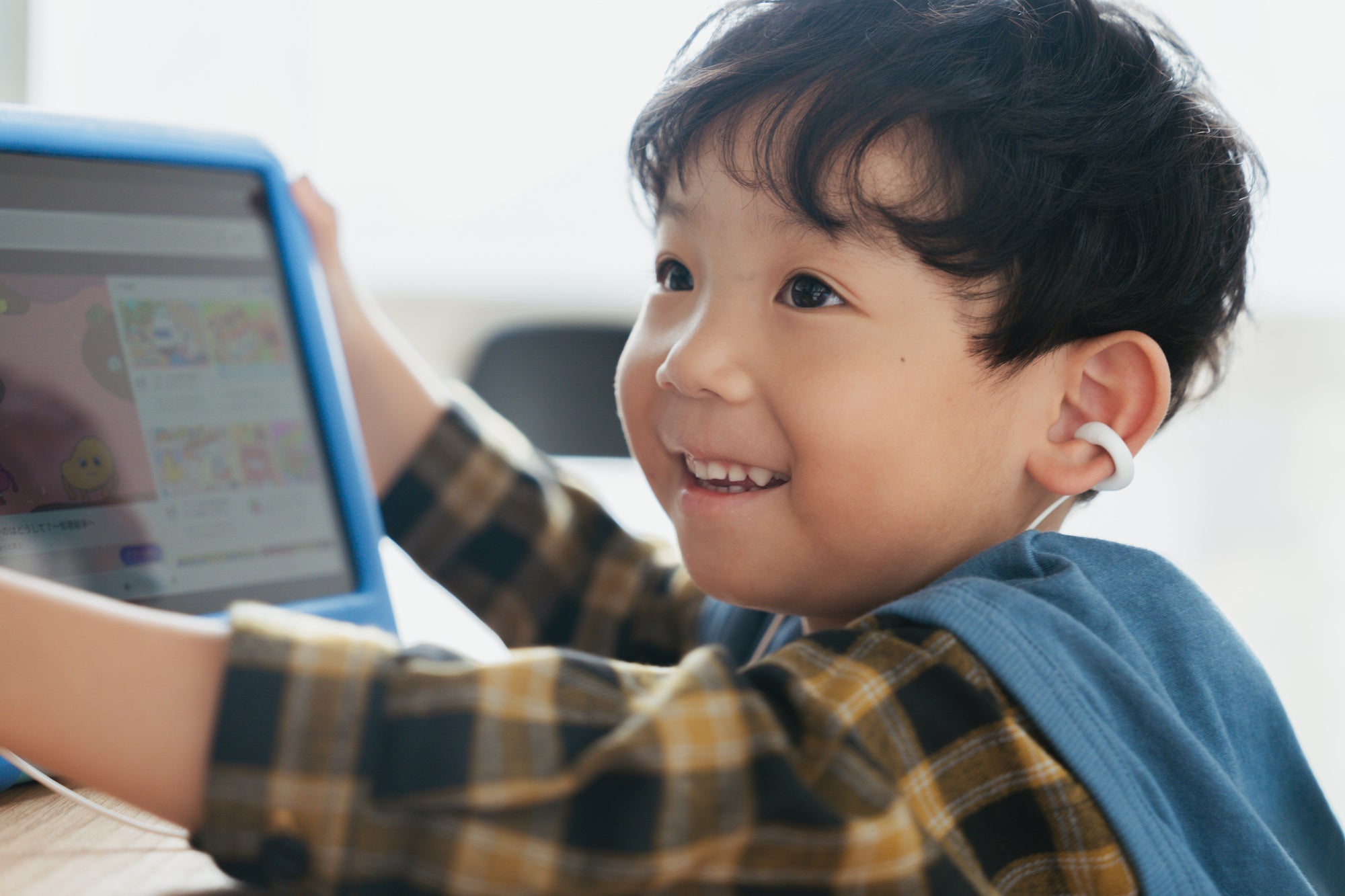 イヤカフ型でしっかりホールドするので、年齢を問わず装着可能。耳穴が空いているので呼びかけも、自分の声もしっかり聞こえる。お子様のタブレット視聴や、語学学習、ゲームにもおすすめです。