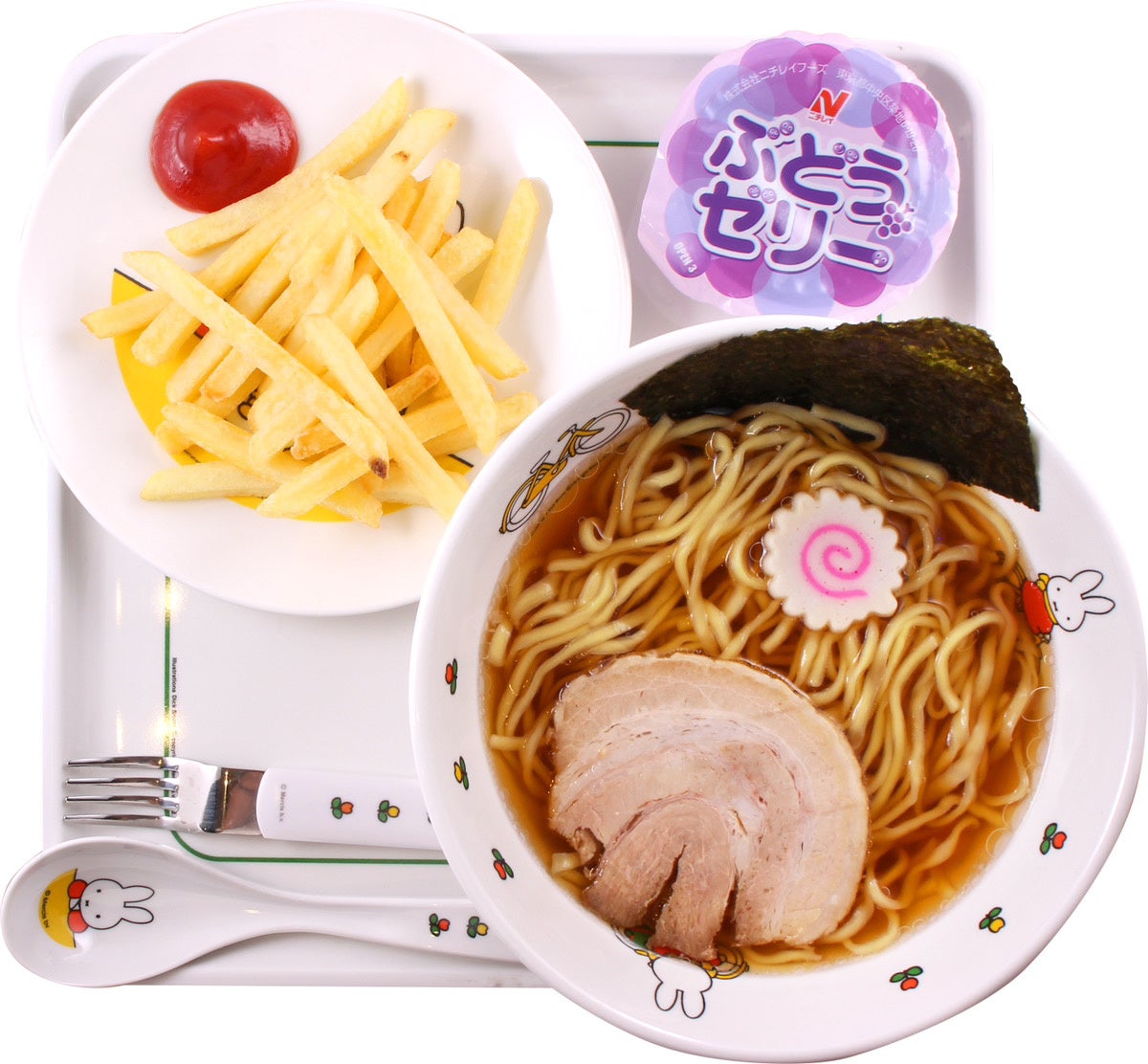 お子様メニュー :お子様ラーメン 税込400円(ポテトフライ・ゼリー付)