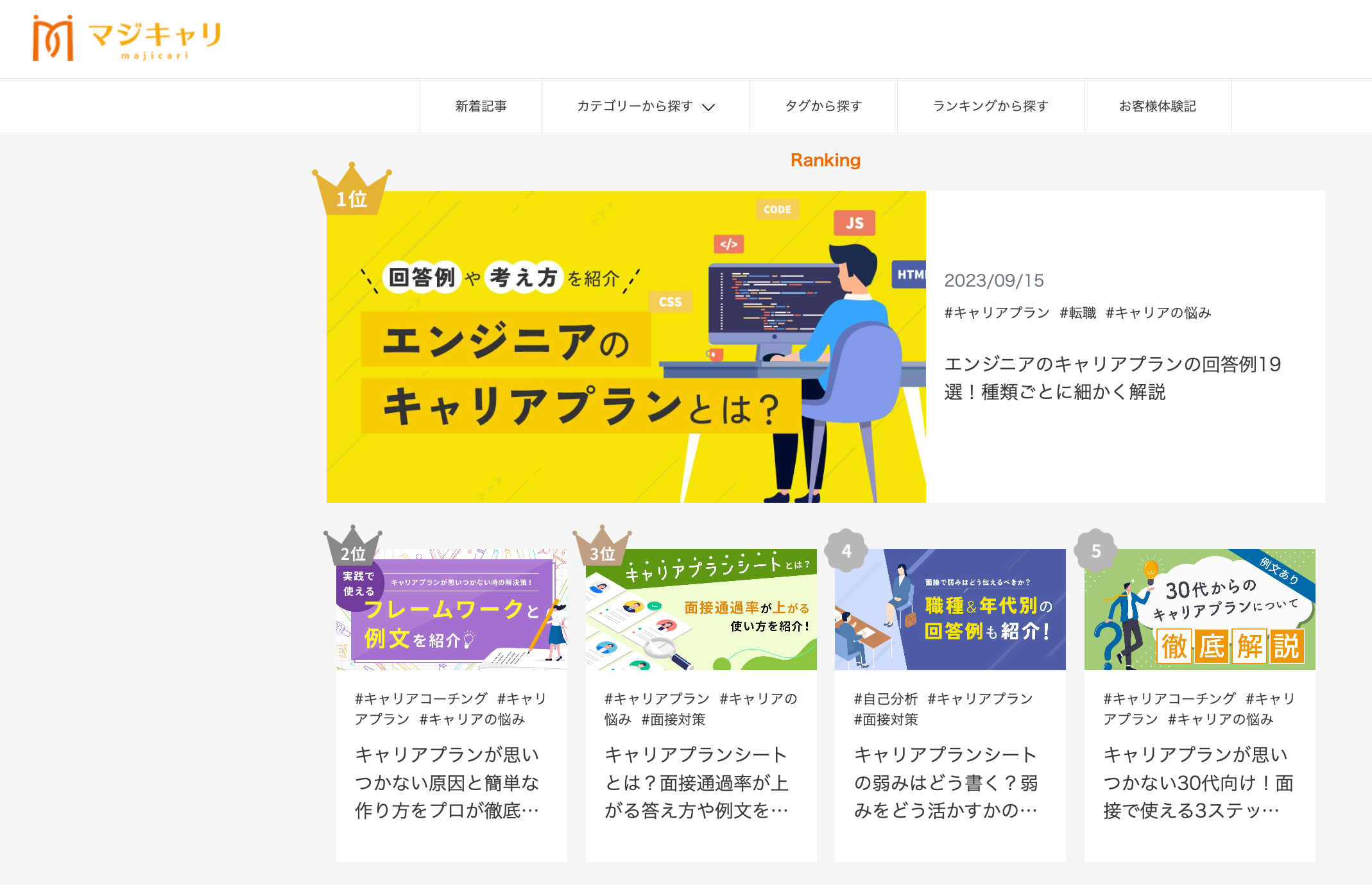 マジキャリblogは20〜30代のビジネスパーソンをターゲットに、「転職を通じてどうキャリアを形成するか」「仕事の悩みにどう向き合うか」等、仕事だけではなく⼈⽣を踏まえた上でのキャリア形成、転職や仕事に関する情報発信をするメディアです。