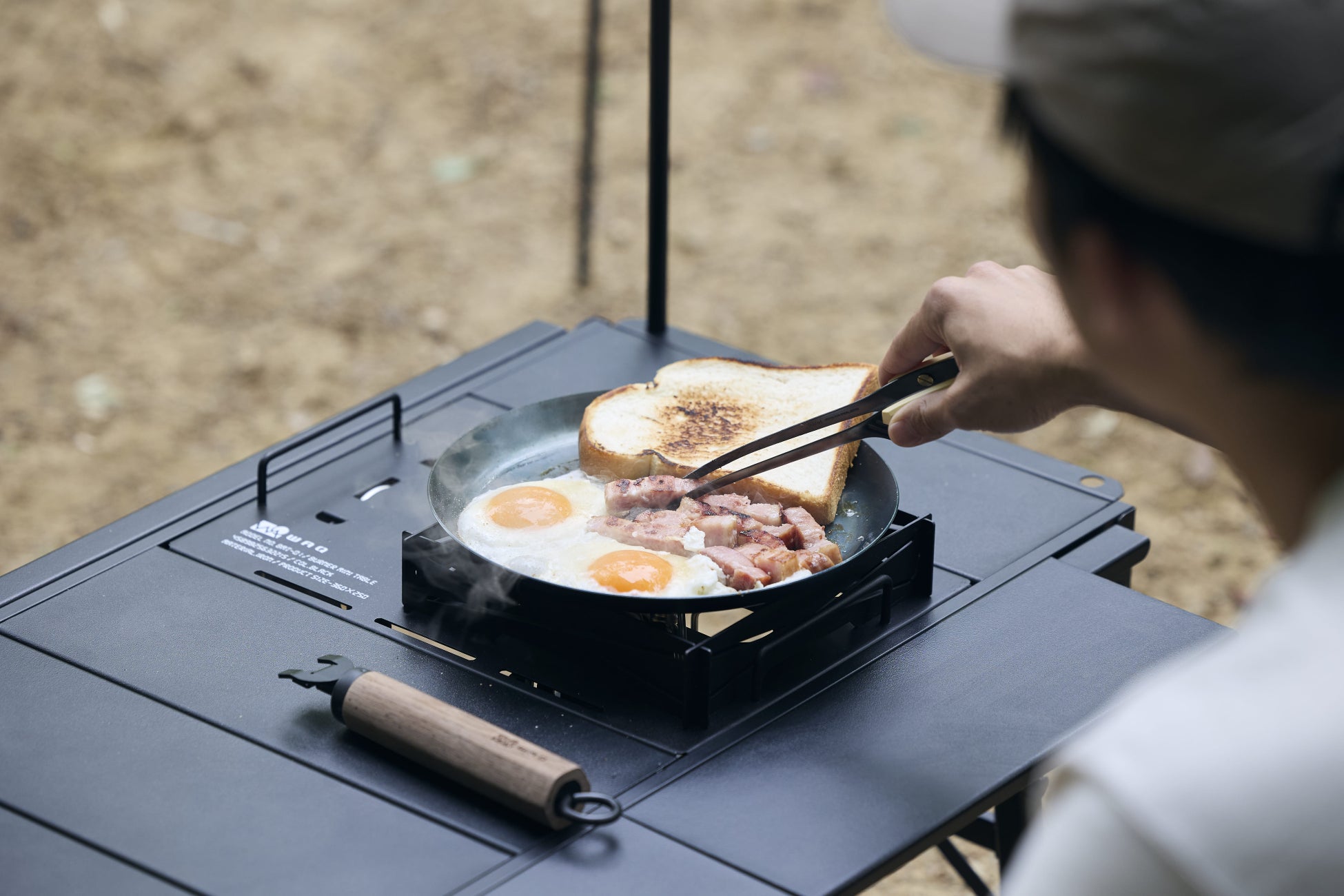 高い熱伝導率と保温性を備えた鉄製のフライパンだからこそ、食材を美味しくふっくら焼き上げる事ができます。食パンも外はカリカリ、中はふわふわ、キャンプでの朝食が楽しみになります。