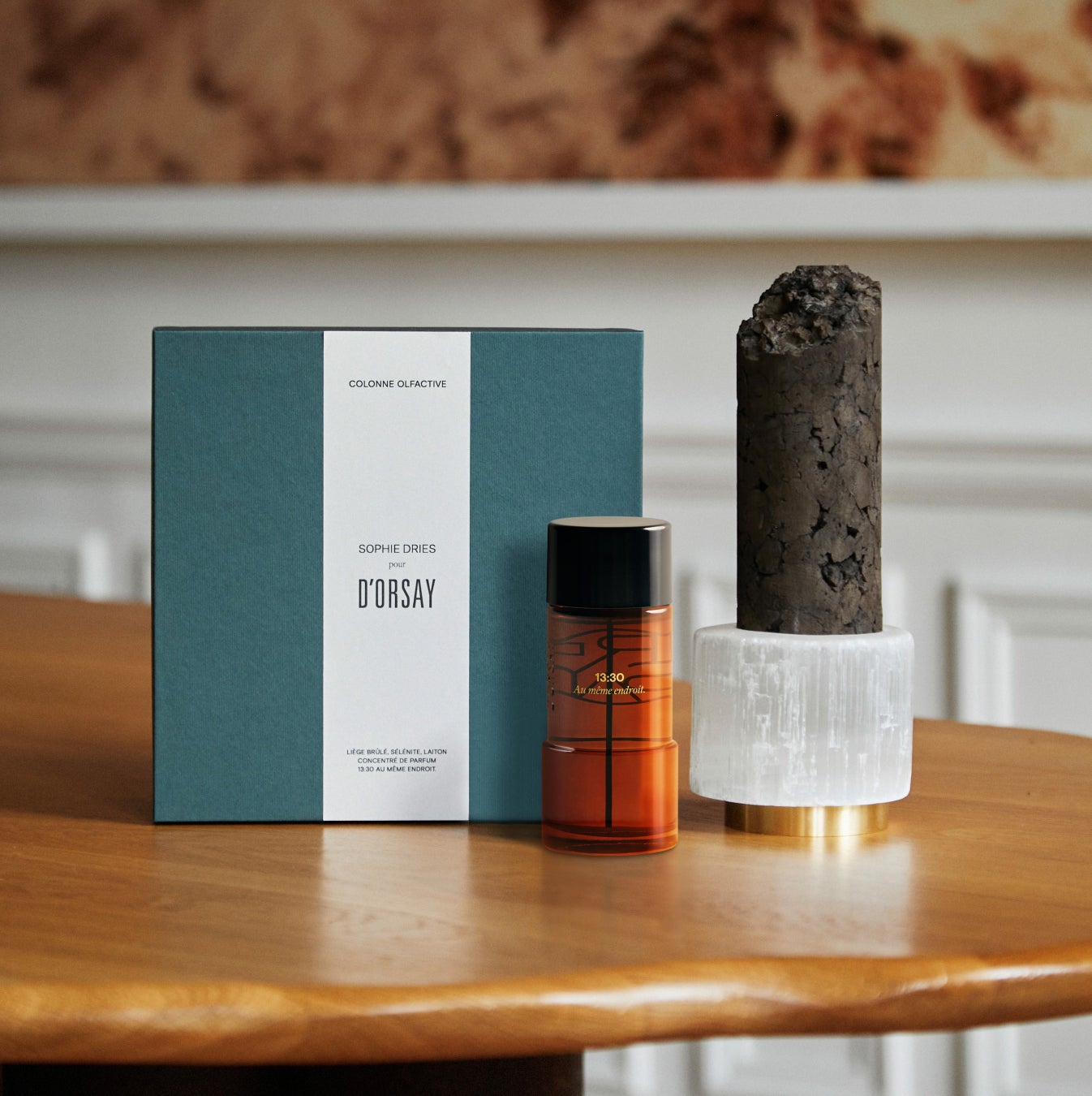建築家ソフィー・ドリエスとドルセーの美学が交差する。2023年のミラノサローネではじめて発表された、空間を嗅覚的にも視覚的にも印象付けるオブジェ。ソフィー・ドリエスはドルセーの象徴的な素材である、鉱物(トラバーチン⽯)、⽊(クルミの⽊)、⾦属(真鍮)のトリプティークに先鋭性とひねりを加え、新しい素材の組み合わせを通して、彼⼥⾃⾝の垂直的で有機的なビジョンを提案。