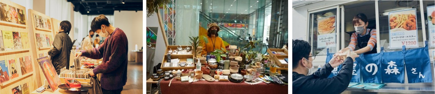 “時間“をテーマに、空間と⾹り、⾳が融合したディープなリスニングが体験できるスペシャルルーム、 つくり⼿の魂がこもったサステナブル⾷材を使ったフードや鮮⿂が購⼊できる対⾯式店舗が登場。
