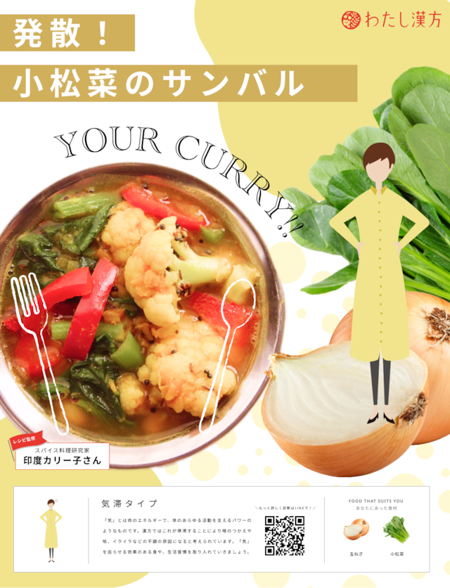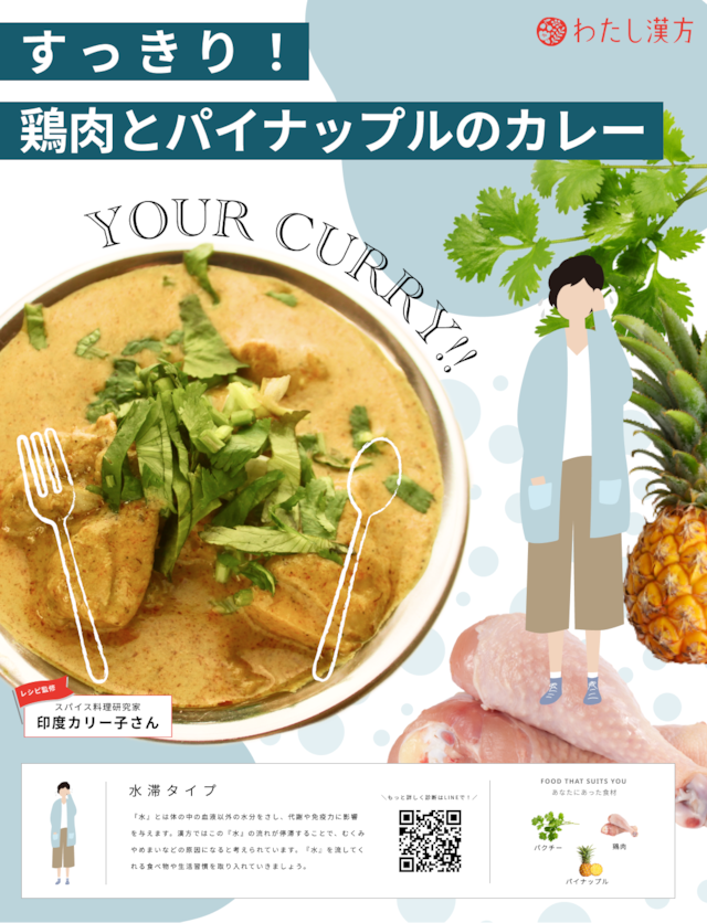 わたし漢方株式会社(本社:東京都渋谷区、代表取締役社長:丸山 優菜、以下わたし漢方)が運営する、LINEで届く『わたし漢方』は、スパイス料理研究家の印度カリー子さんと共同開発した5種類の「漢方スパイスカレーキット」の発売を7月13日(水)13時にWEBサイト( https://curry.watashikampo.com/ )にて開始いたしました。WEBサイトには、漢方理論に基づいた簡単な体質診断をご用意。質問に答えていくだけで自分の体質に合ったカレーが見つかる仕掛けになっています。