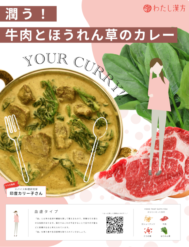 - 【血虚タイプ向け】潤う!牛肉とほうれん草のカレー