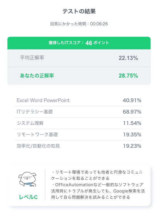今回、WHITE社の提供する「MENTER ASSESSMENT」(ITスキル診断テスト)を導入するにあたり、個人個人がカテゴリ別の正解率を見ることができる点(本人の改善ポイントが明確)と、定量データとして他企業平均と比較ができる点(企業としての強化ポイントが明確)を高く評価しました。