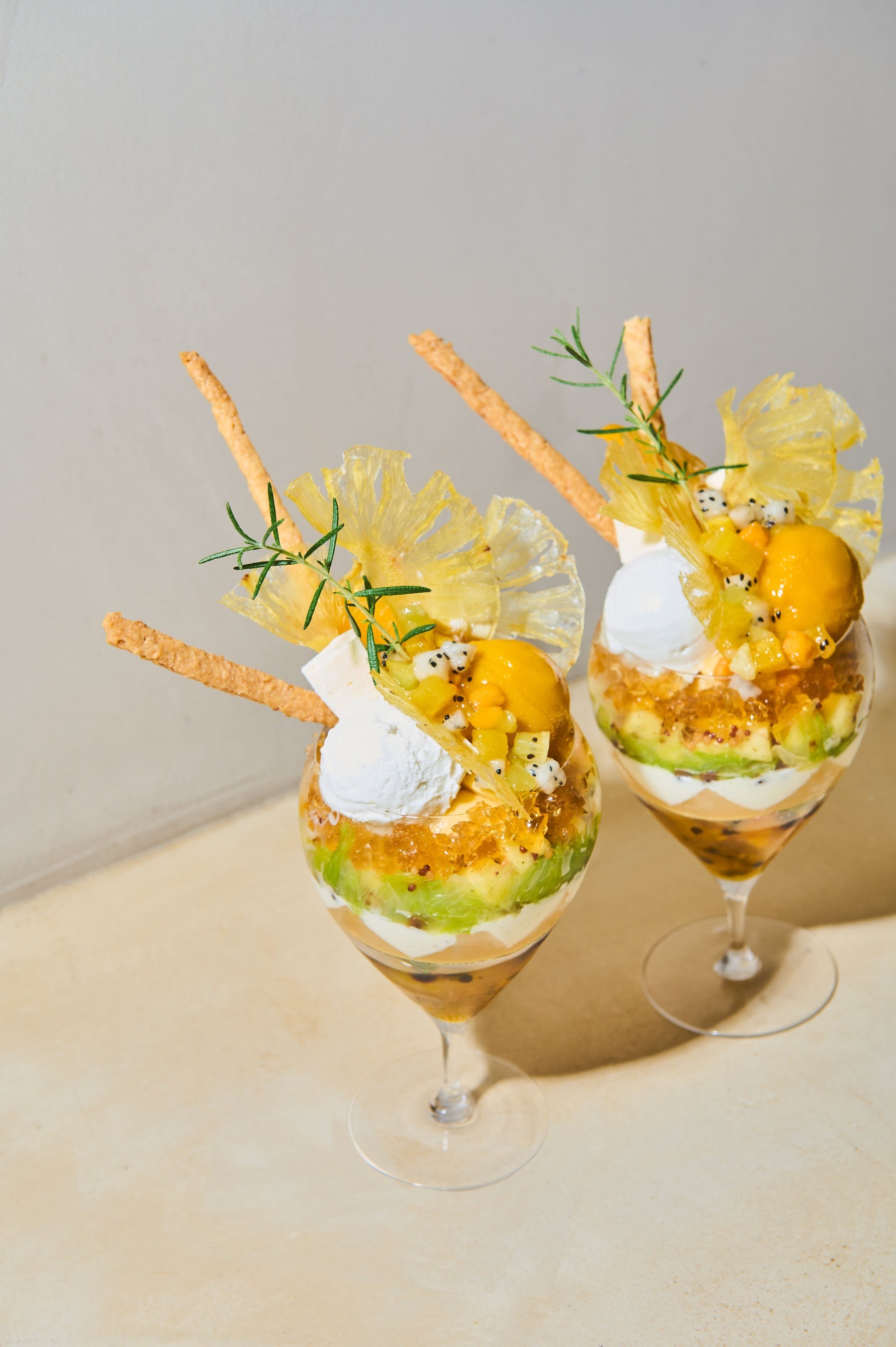 酸味と甘味が強く、潤いたっぷりのトロピカルフルーツに、他の要素を持つ食材を掛け合わせることで、上から下までめいっぱいお楽しみいただける1杯に仕上げています。